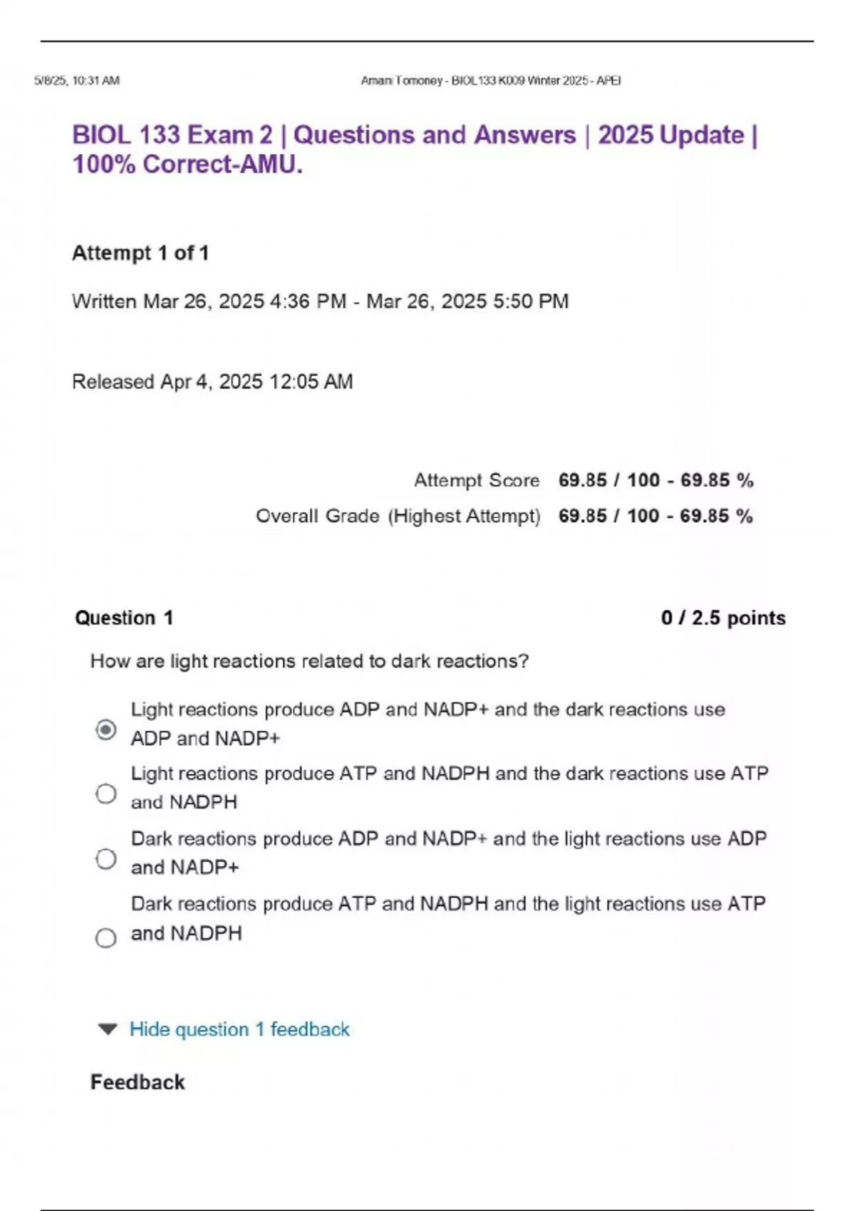 BIOL 133 Exam 2 | Questions and Answers | 2025 Update | 100% Correct-AMU.