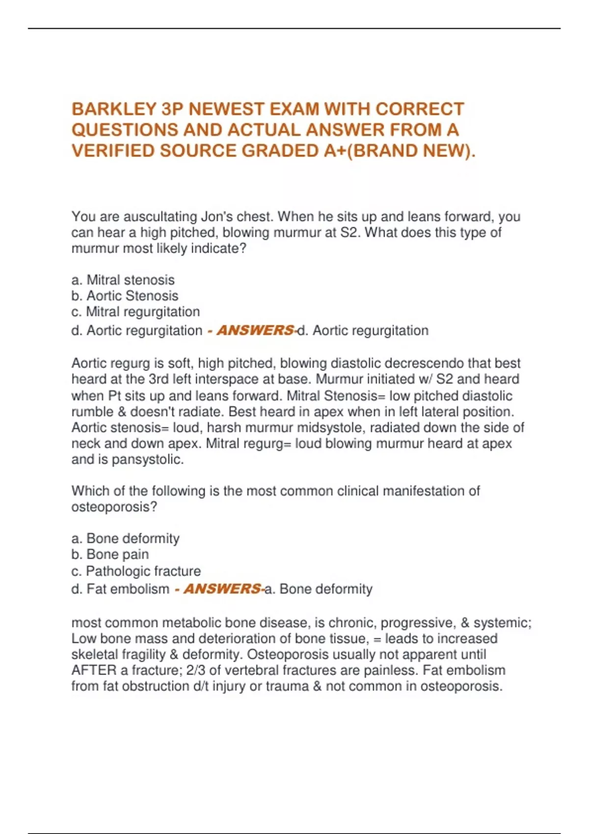 BARKLEY 3P NEWEST EXAM WITH CORRECT