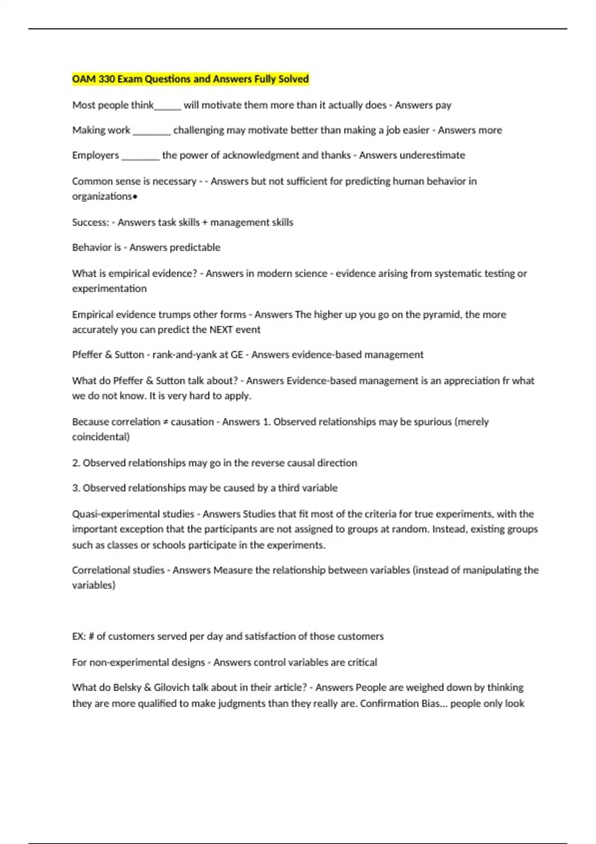 Most people think_____ will motivate them more than it actually does - Answers pay