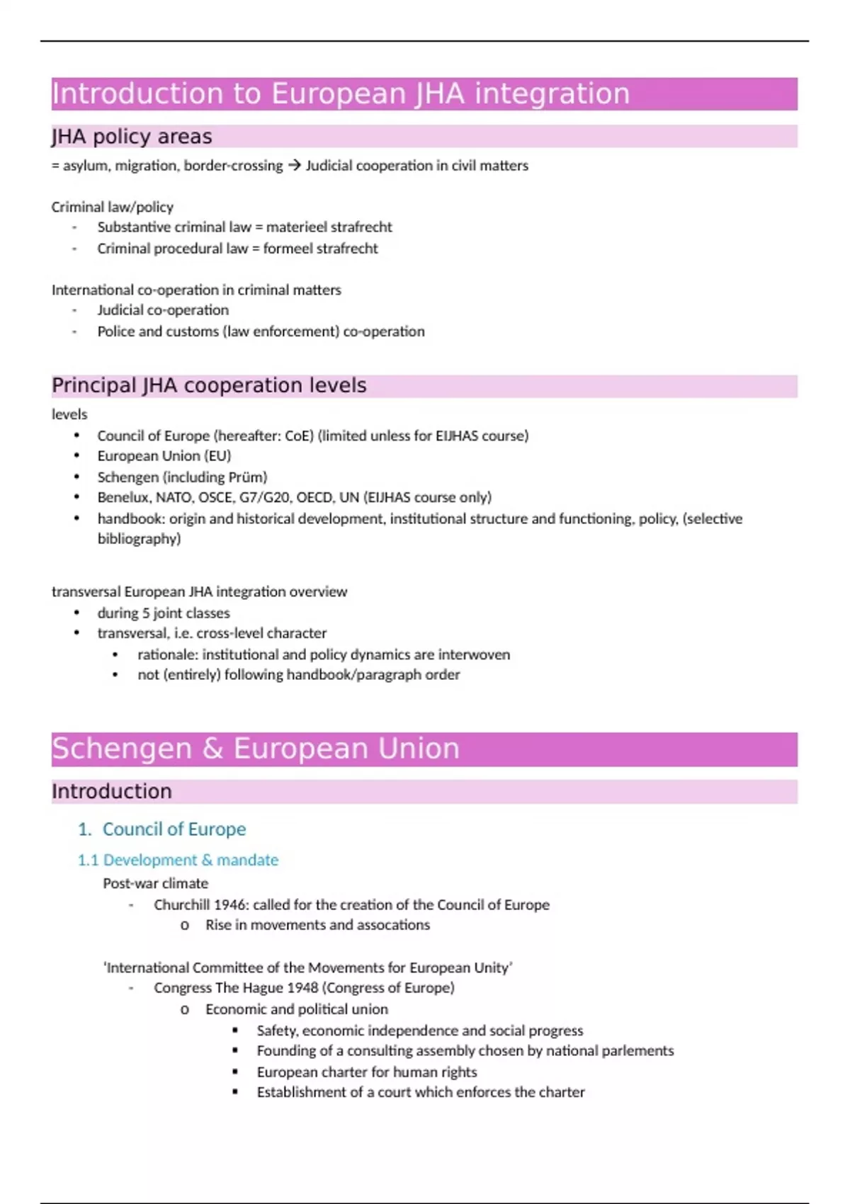 • Council of Europe (hereafter: CoE) (limited unless for EIJHAS course)