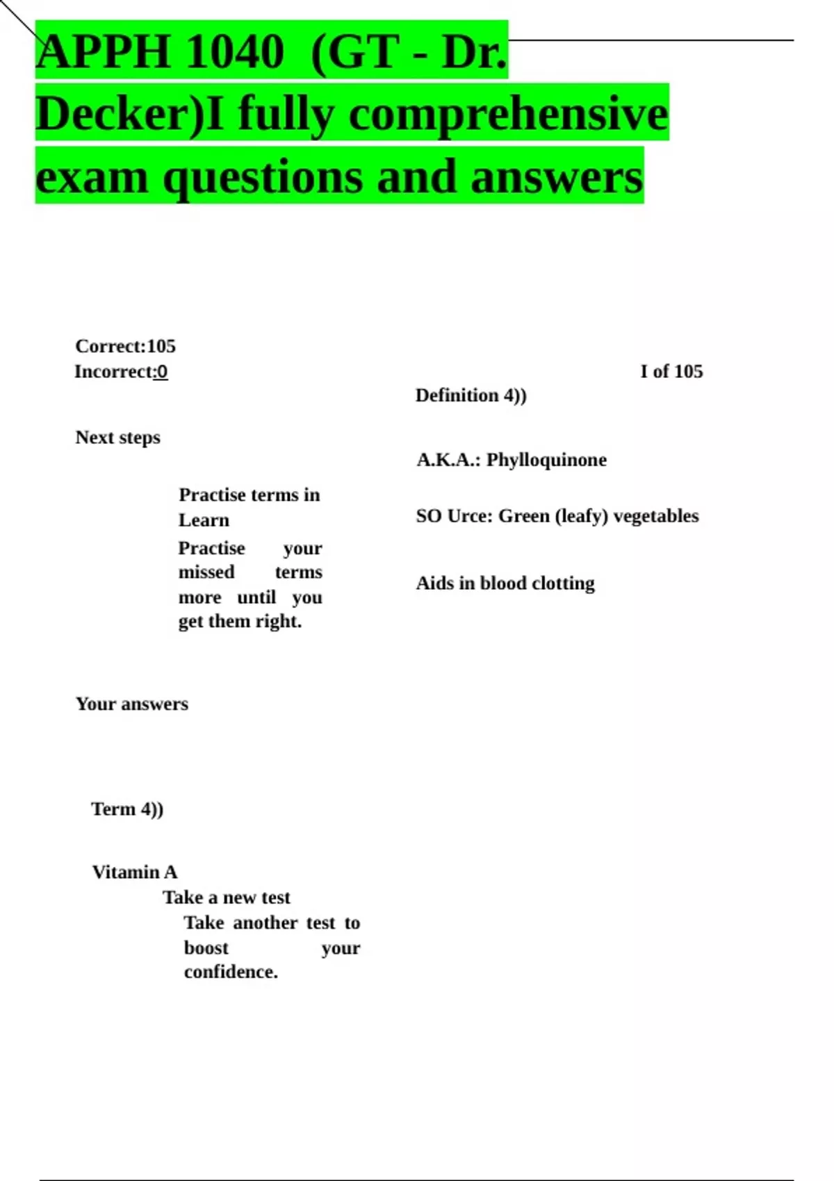 Incorrect:0 I of 105