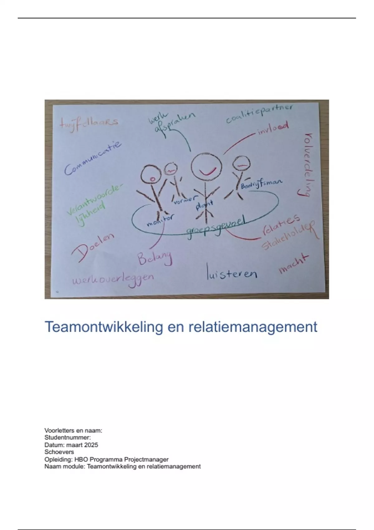 Voor u ligt mijn examenopdracht voor de module Teamontwikkeling en relatiemanagement. In deze