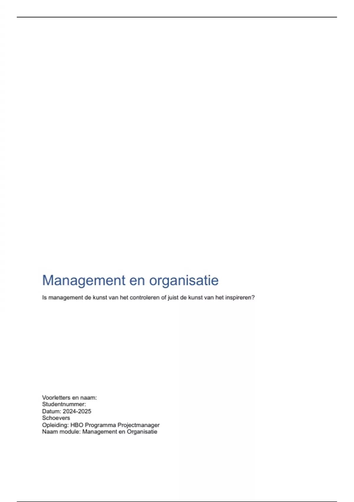 Naam module: Management en Organisatie