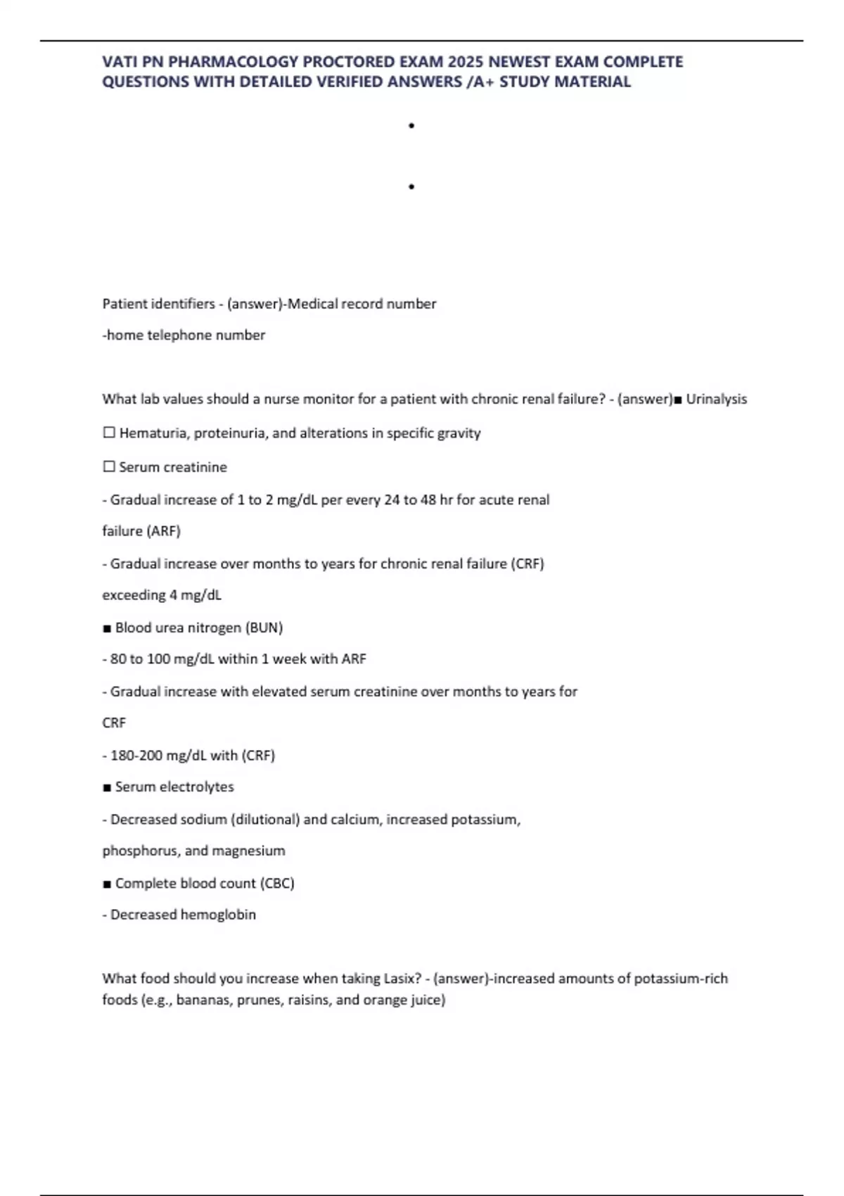 What lab values should a nurse monitor for a patient with chronic renal failure? - (answer)■ Urinalysis
