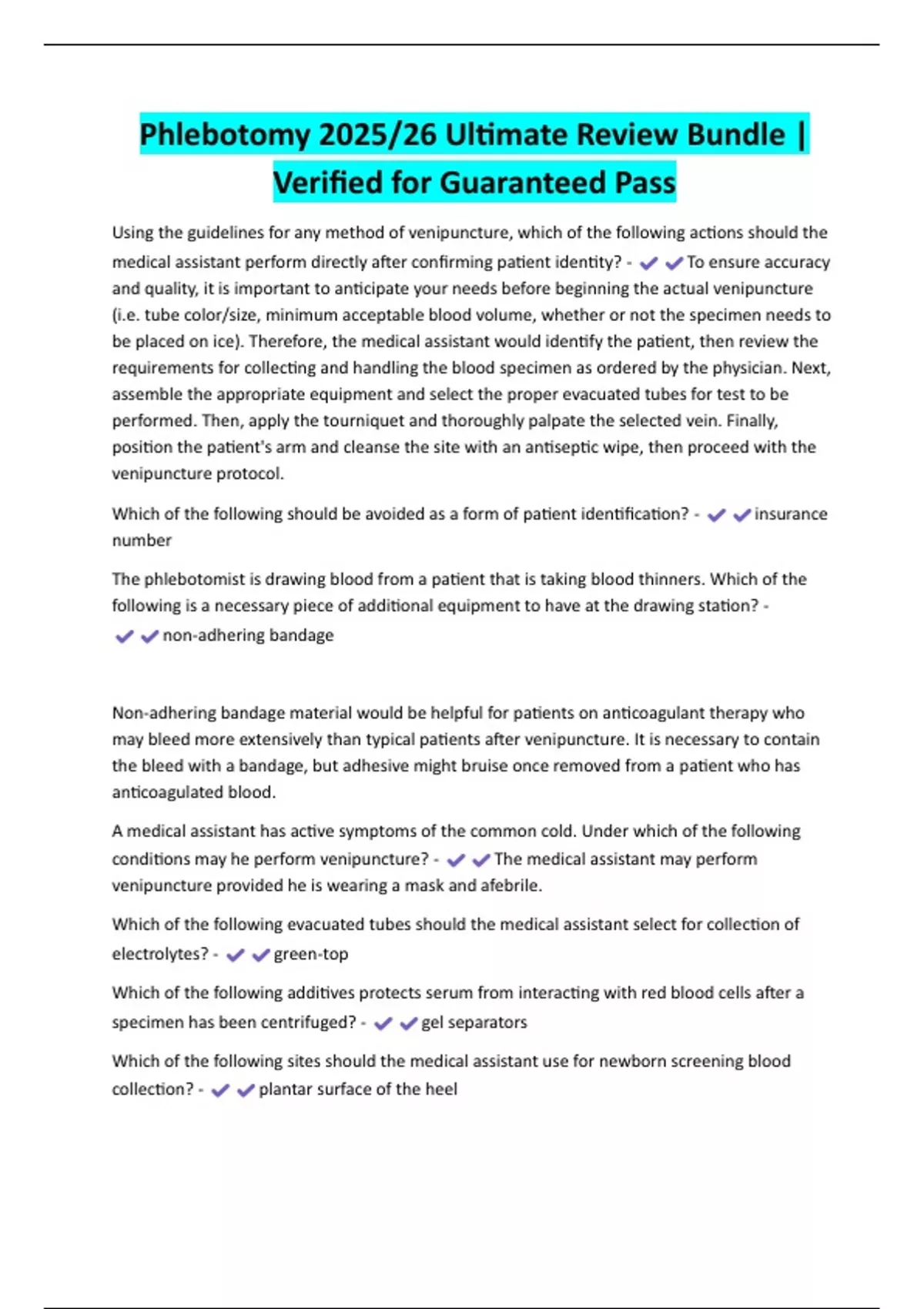 Phlebotomy 2025/26 Ultimate Review Bundle | Verified for Guaranteed Pass