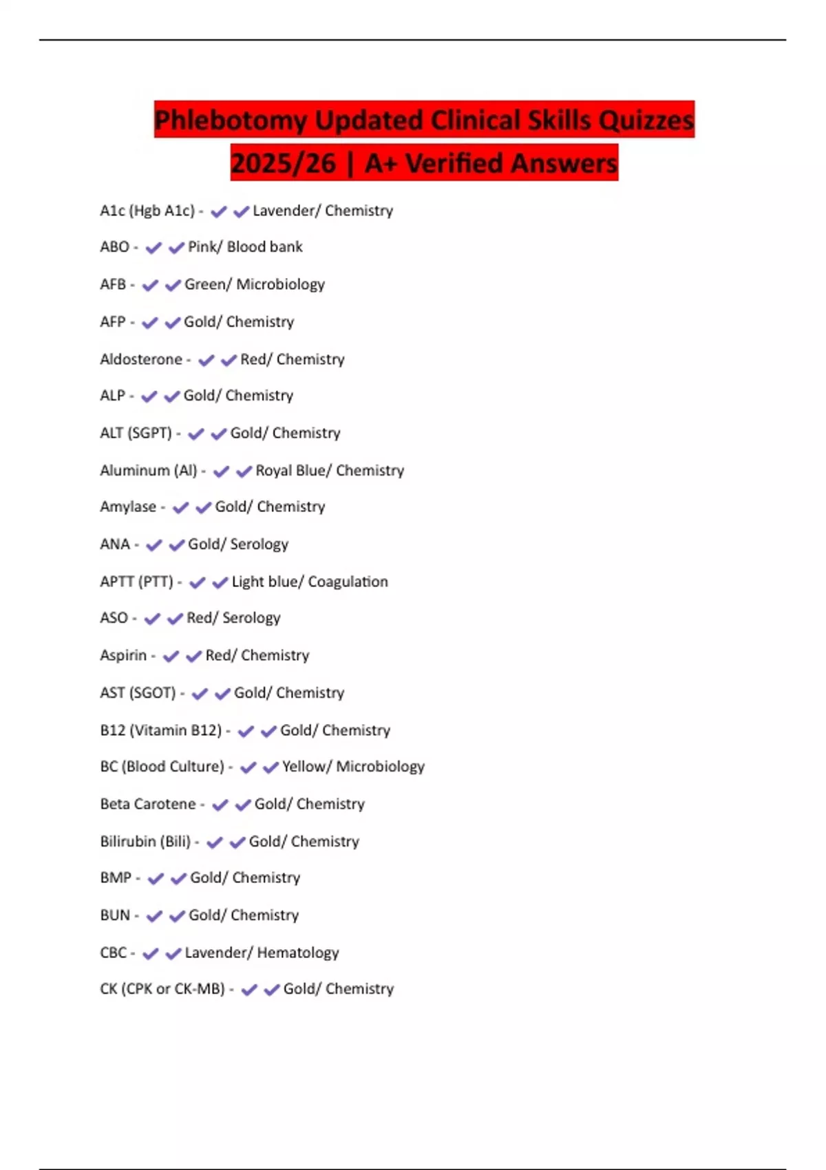 Phlebotomy Updated Clinical Skills Quizzes 2025/26 | A+ Verified Answers