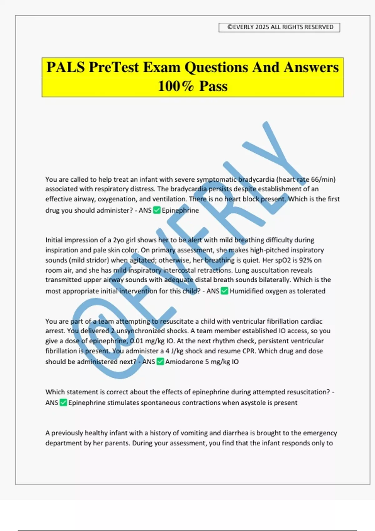 PALS PreTest Exam Questions And Answers