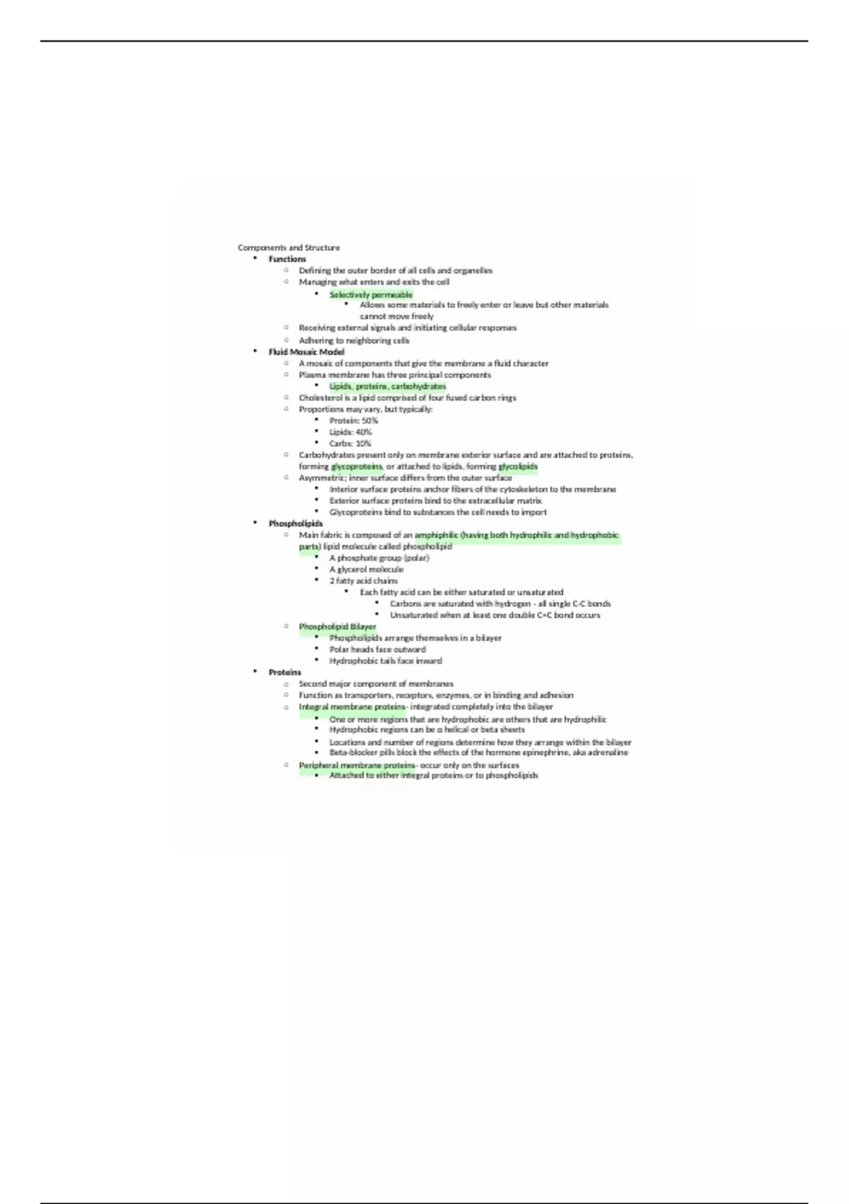 Summary BSC 1010 Structure and function of plasma membranes Review