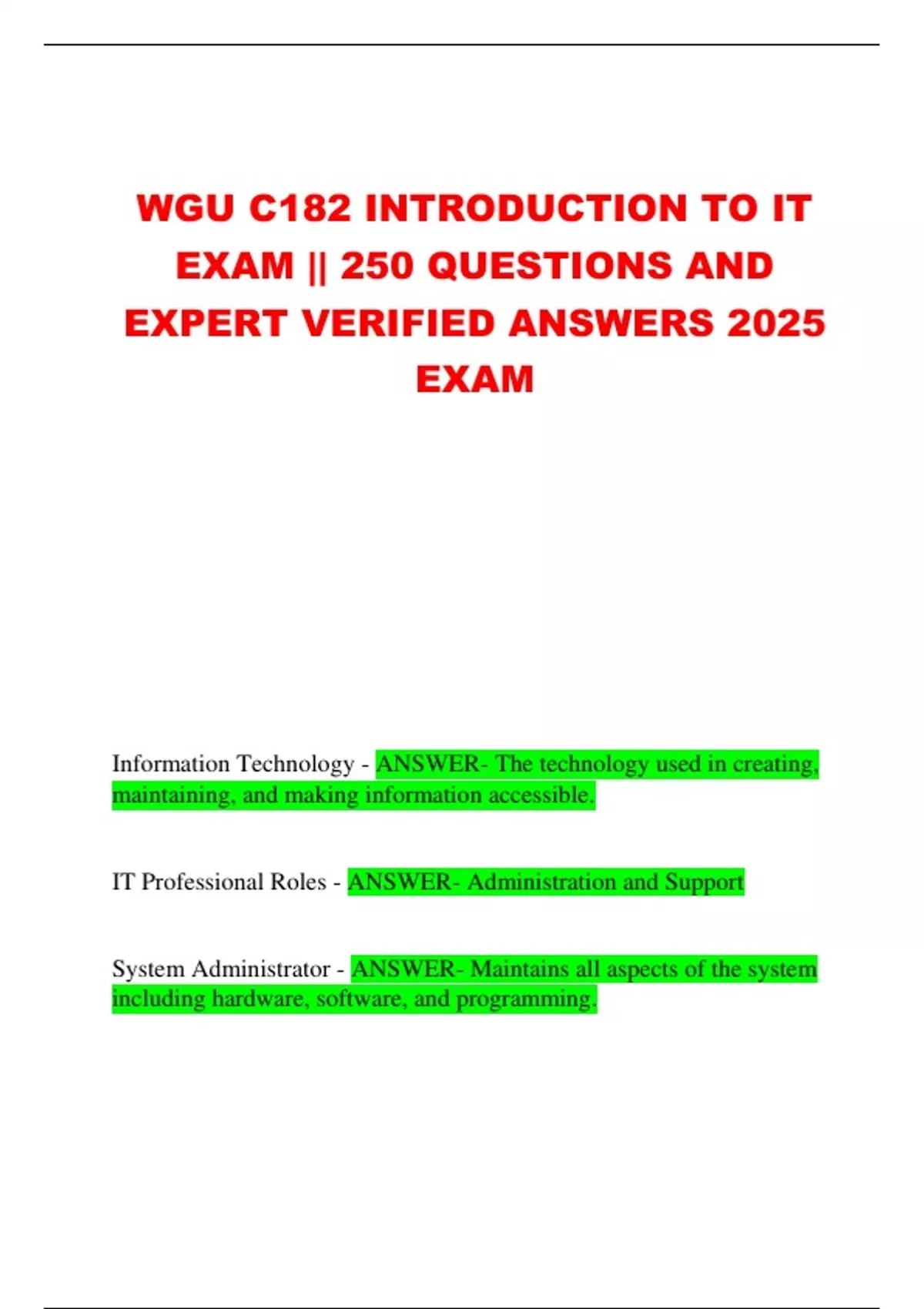 WGU C182 INTRODUCTION TO IT EXAM || 250 QUESTIONS AND EXPERT VERIFIED ANSWERS 2025 EXAMWGU C182 INTRODUCTION TO IT EXAM || 250 QUESTIONS AND EXPERT VERIFIED ANSWERS 2025 EXAMWGU C182 INTRODUCTION TO IT EXAM || 250 QUESTIONS AND EXPERT VERIFIED ANSWERS 2025 EXAM
