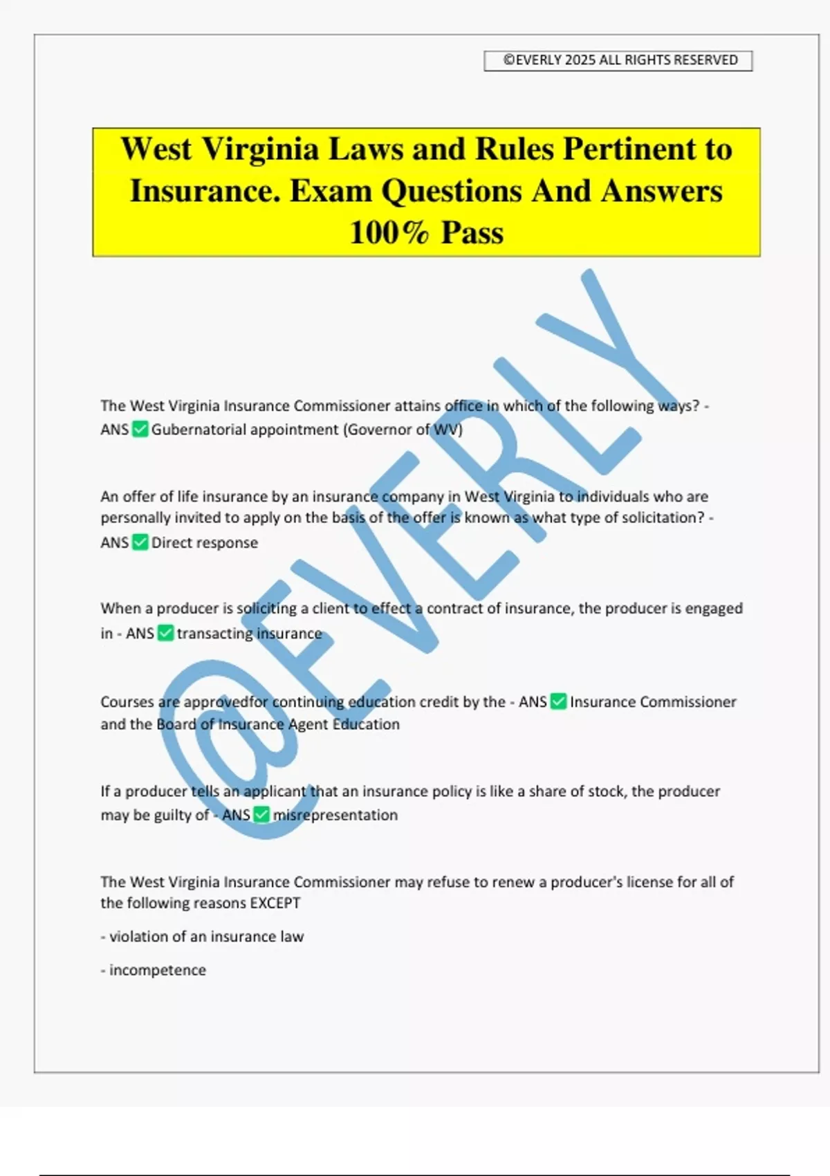 Insurance. Exam Questions And Answers