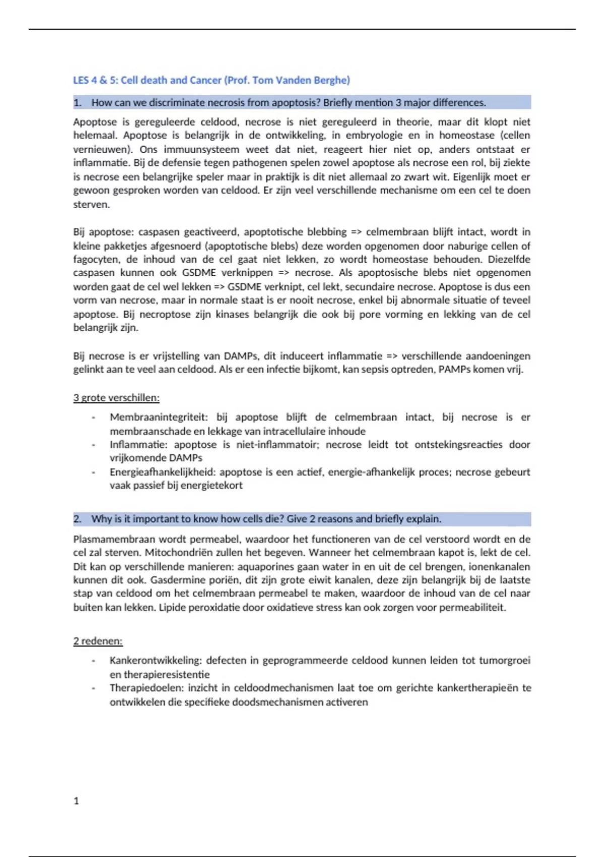 worden gaat de cel wel lekken => GSDME verknipt, cel lekt, secundaire necrose. Apoptose is dus een