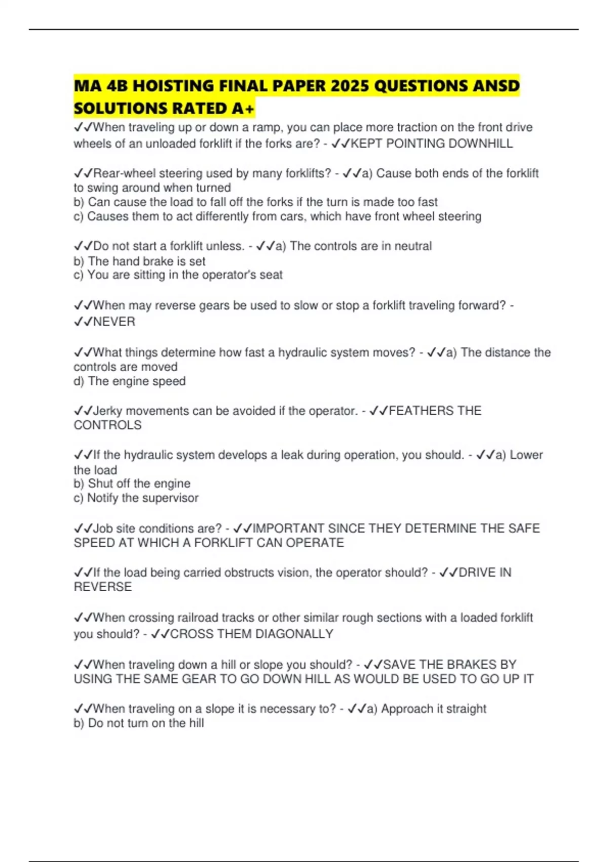 ✔✔Do not start a forklift unless. - ✔✔a) The controls are in neutral