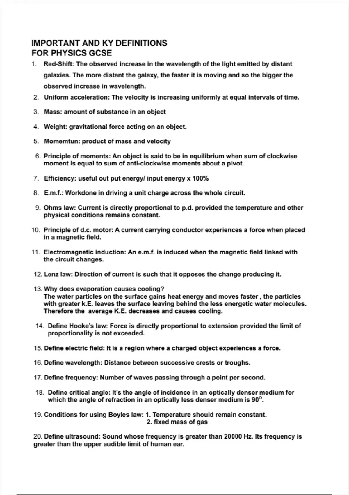 My document is a summary of all the key definitions required to know for Physics o Level/GCSE exam, it will be really helpful for knowing all the definitions in the document.