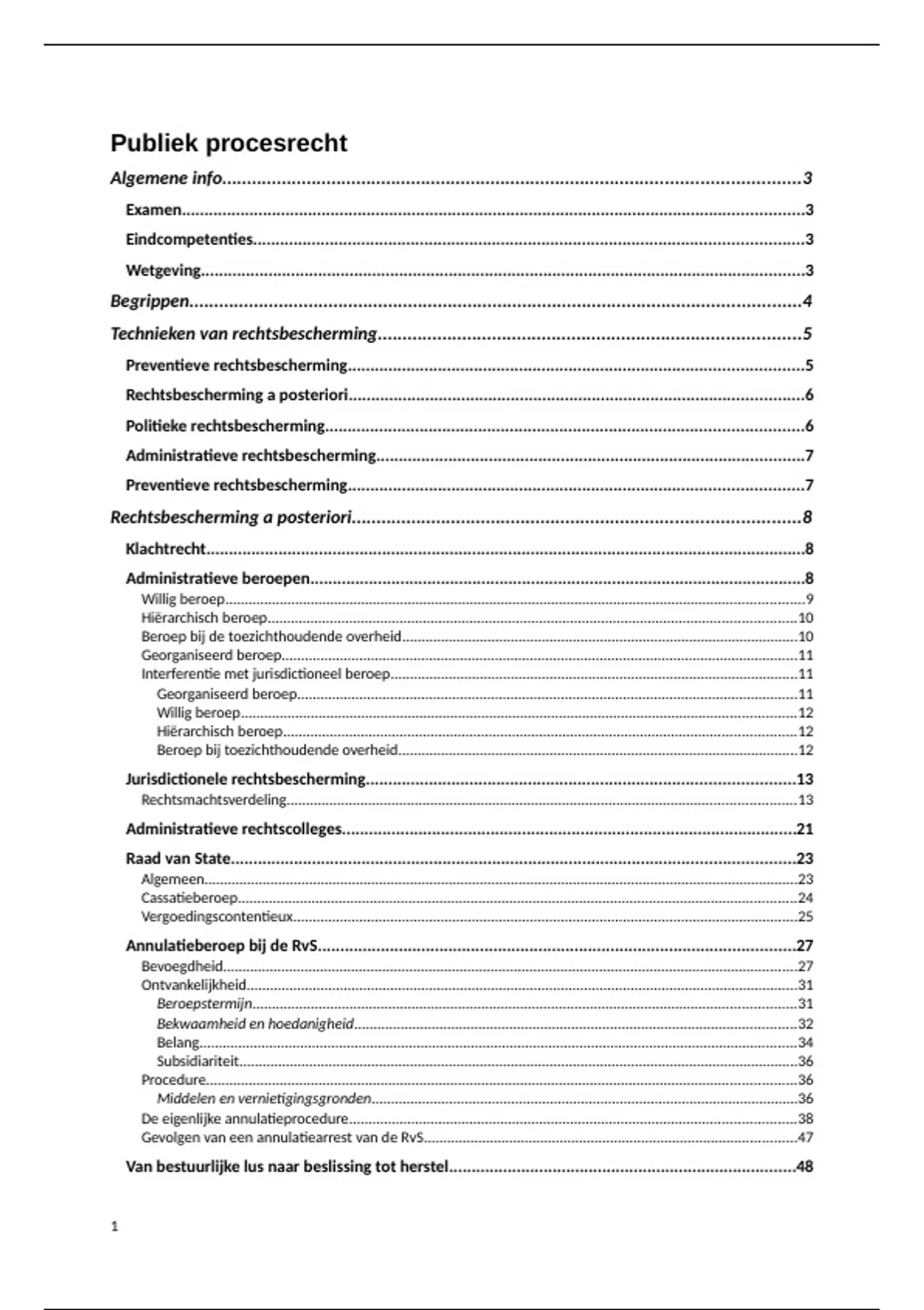 Dit document omvat alle leerstof van het vak publiek procesrecht, gedoceerd door prof. Sabien Lust. Op basis van een duidelijke inhoudstafel wordt elk deeltje overzichtelijk uiteengezet. Inbegrepen zijn de Powerpoint, eigen lesnotities, voorbeeldvragen en -antwoorden met uitleg en aanvulling op basis van de syllabus.