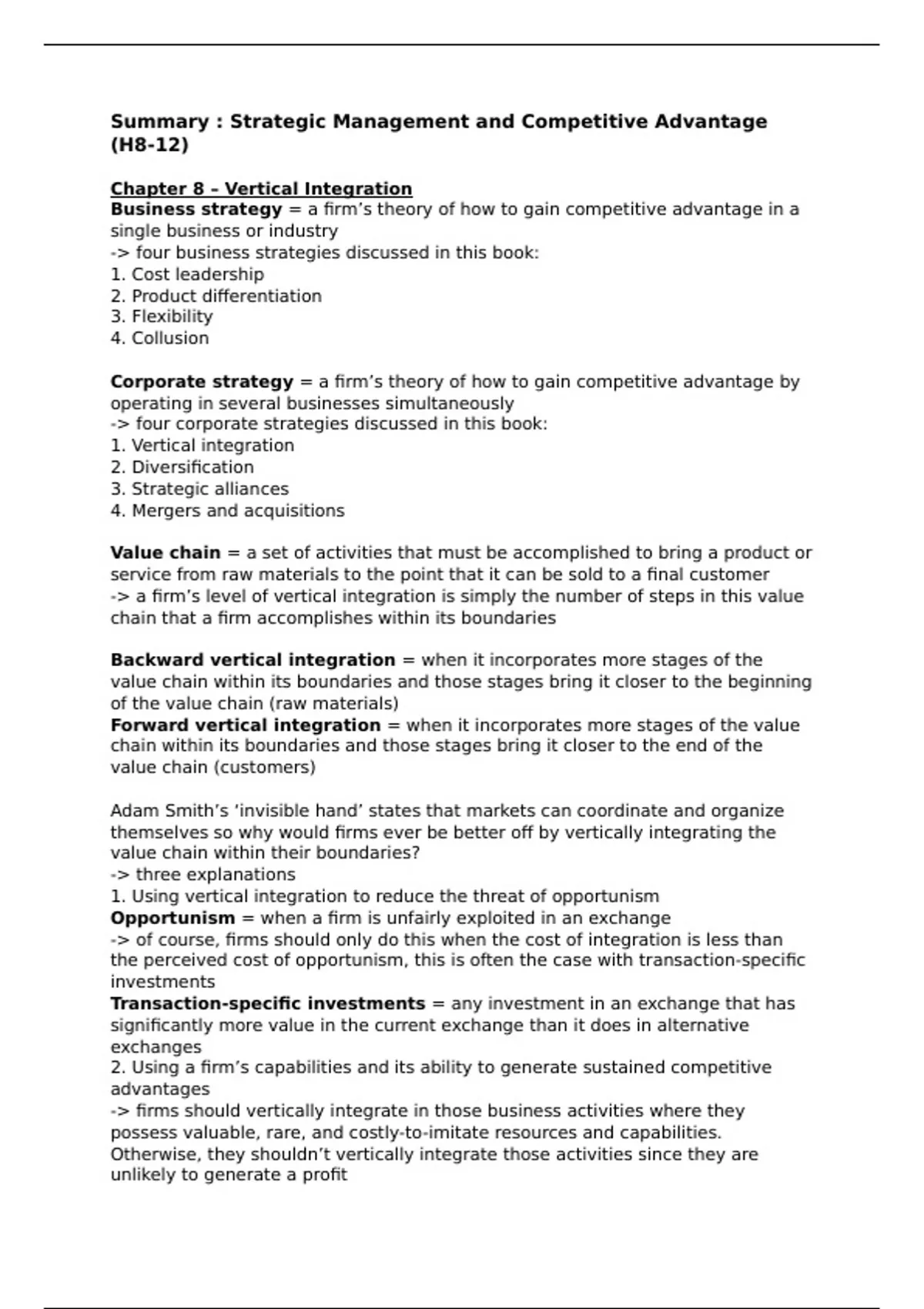 Summary : Strategic Management and Competitive Advantage (H8-12)