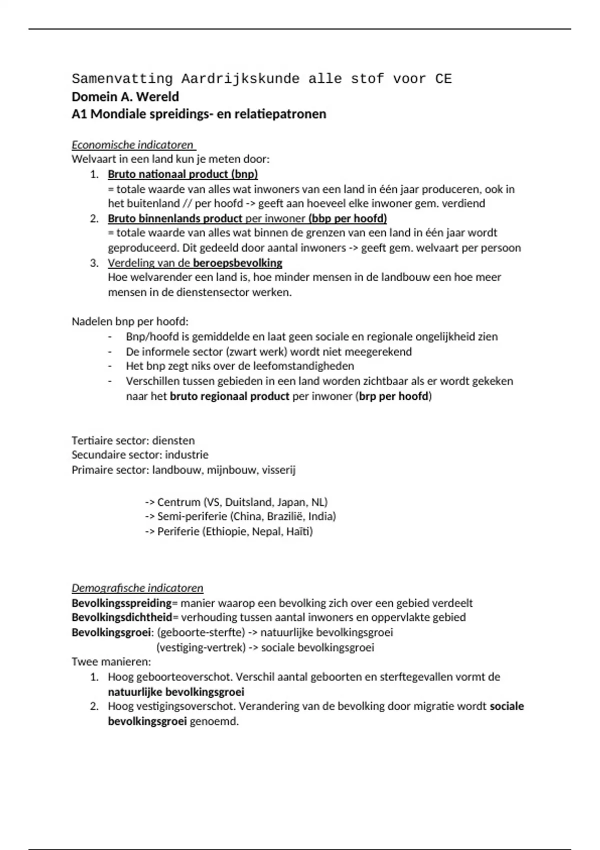 - Bnp/hoofd is gemiddelde en laat geen sociale en regionale ongelijkheid zien