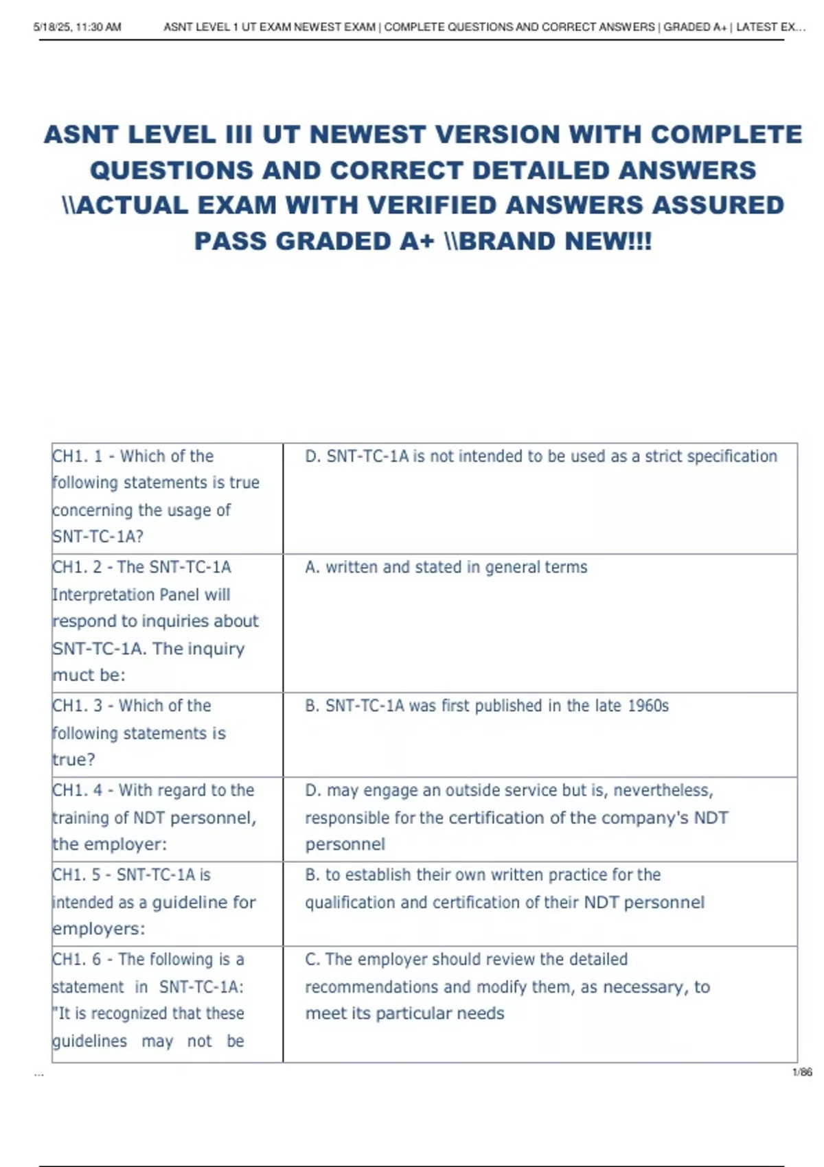 , 5/18/25, 11:36 AM ASNT LEVEL III ACTUAL EXAM 2025 | ALL QUESTIONS AND CORRECT ANSWERS | ALREADY GRADED A+ | LATEST EXAM …