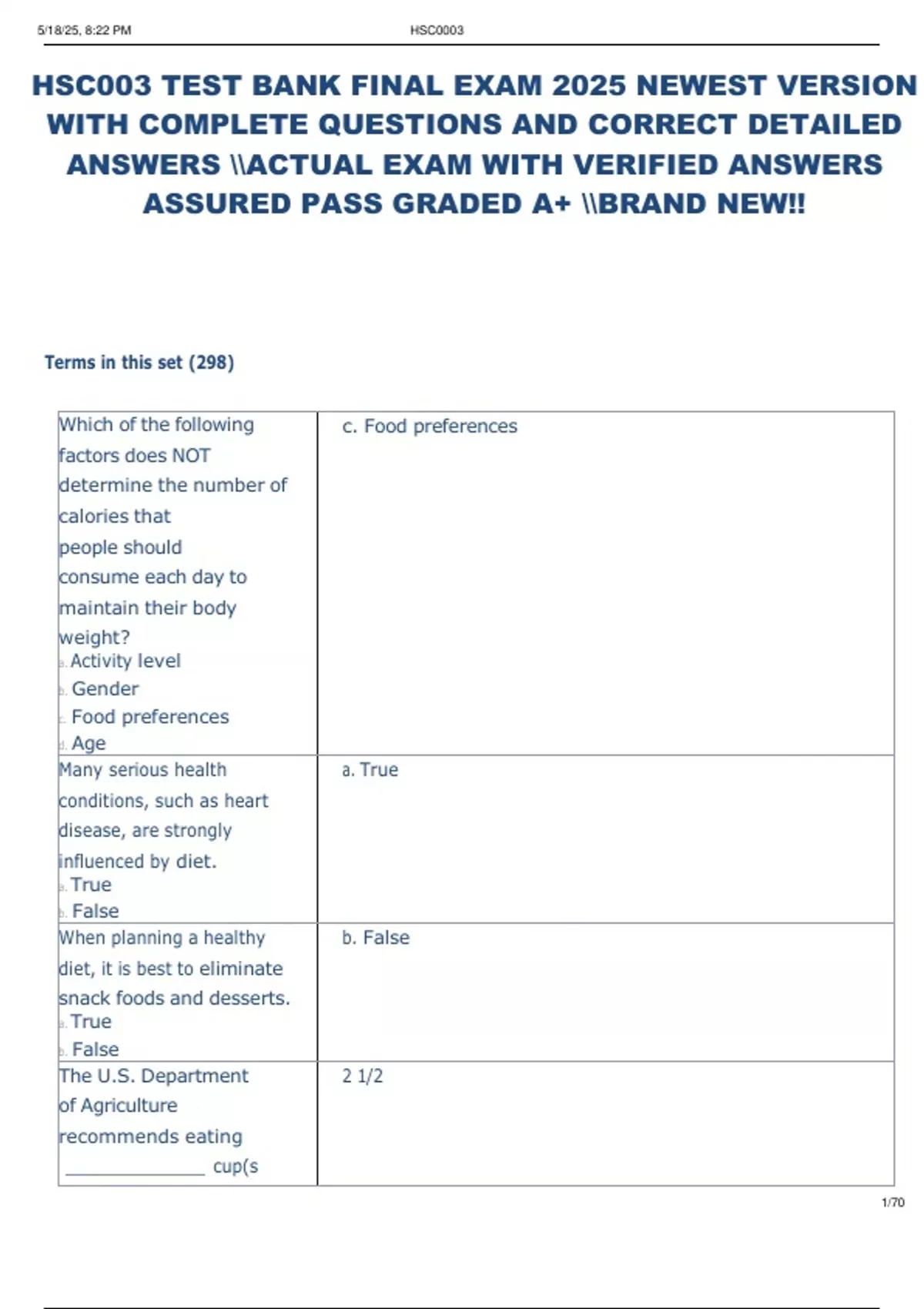 HSC003 TEST BANK FINAL EXAM 2025 NEWEST VERSION