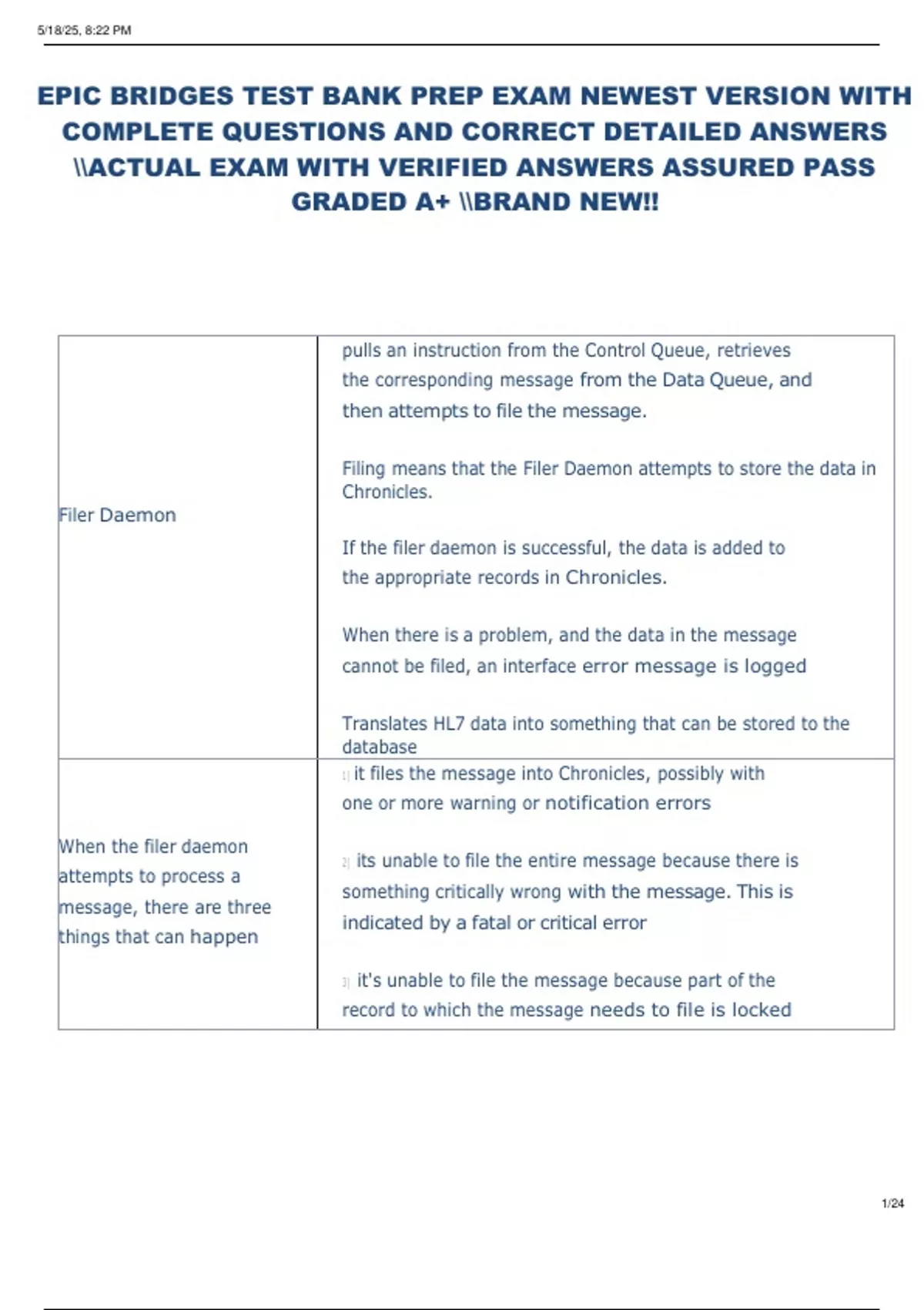 EPIC BRIDGES TEST BANK PREP EXAM NEWEST VERSION WITH