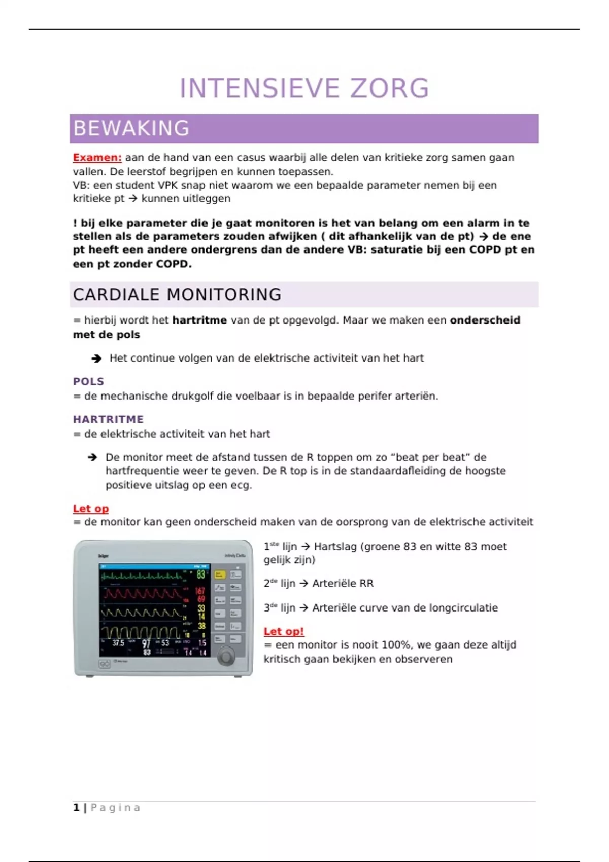 AANDACHTSPUNTEN CARDIAAL MONITORING