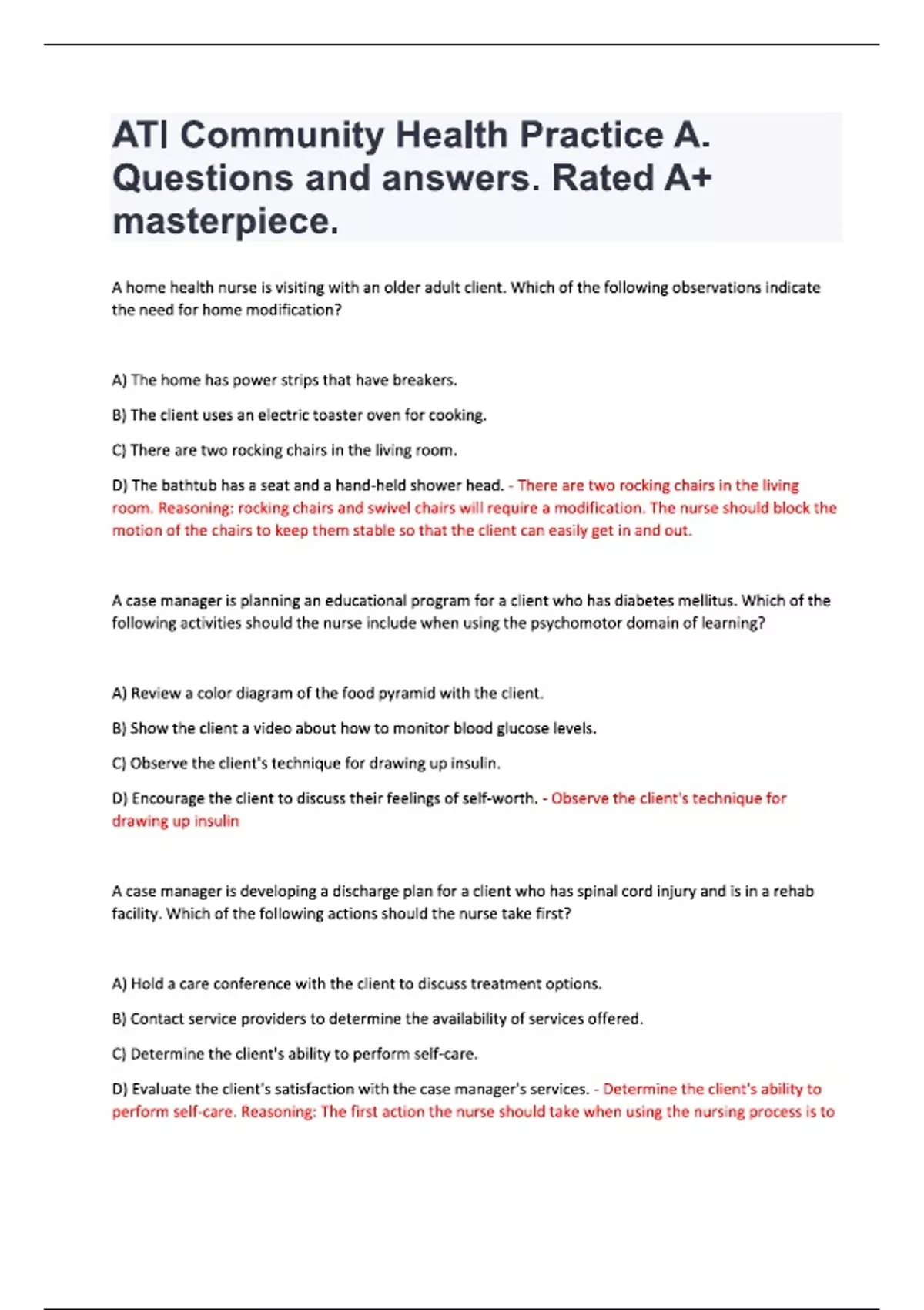 ATI Community Health Practice A. Questions and answers. Rated A+ masterpiece.