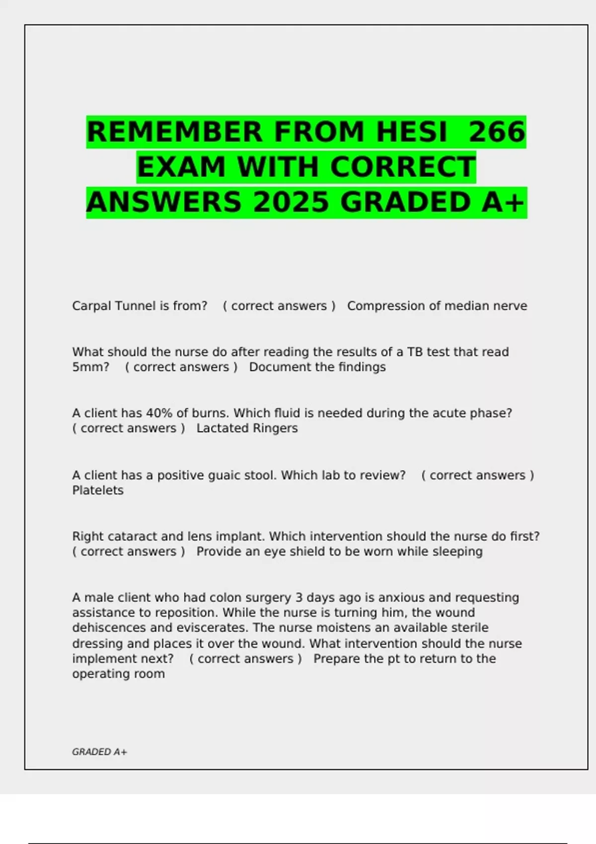 REMEMBER FROM HESI 266 EXAM WITH CORRECT ANSWERS 2025 GRADED A+