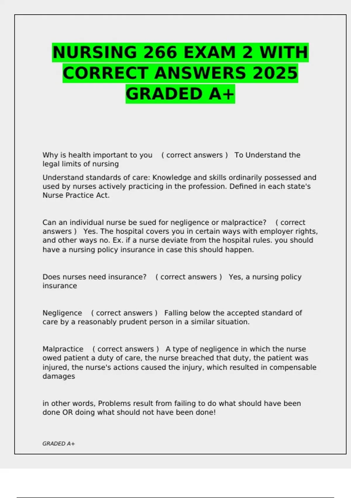 NURSING 266 EXAM 2 WITH CORRECT ANSWERS 2025 GRADED A+