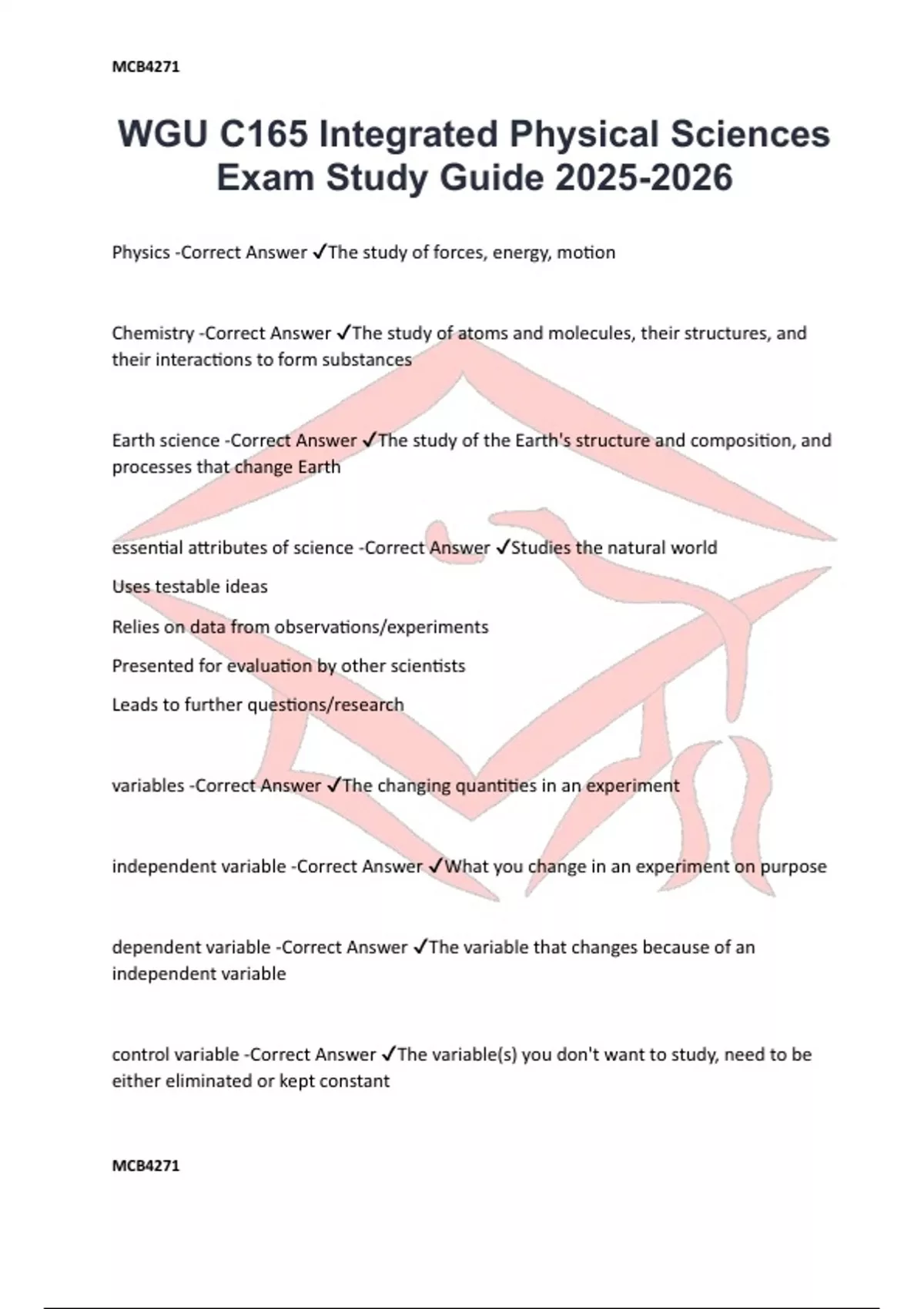 essential attributes of science -Correct Answer ✔Studies the natural world