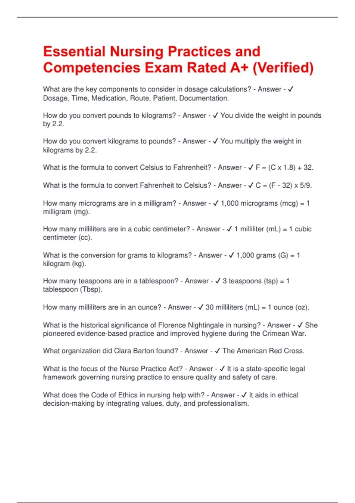 What is the conversion for grams to kilograms? - Answer - ✔ 1,000 grams (G) = 1