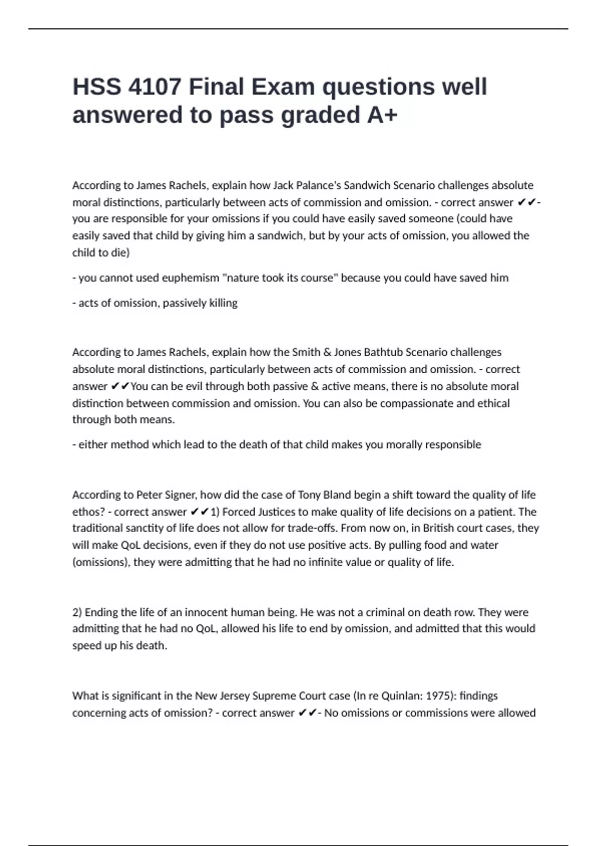 moral distinctions, particularly between acts of commission and omission. - correct answer ✔✔-