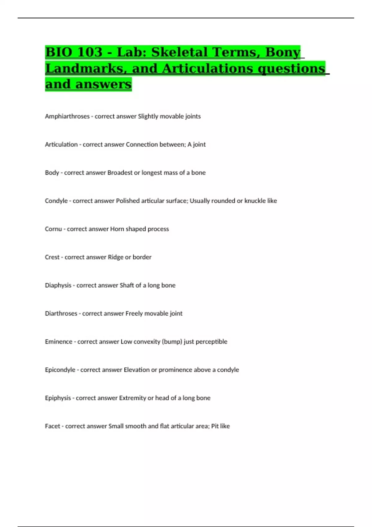 Condyle - correct answer Polished articular surface; Usually rounded or knuckle like