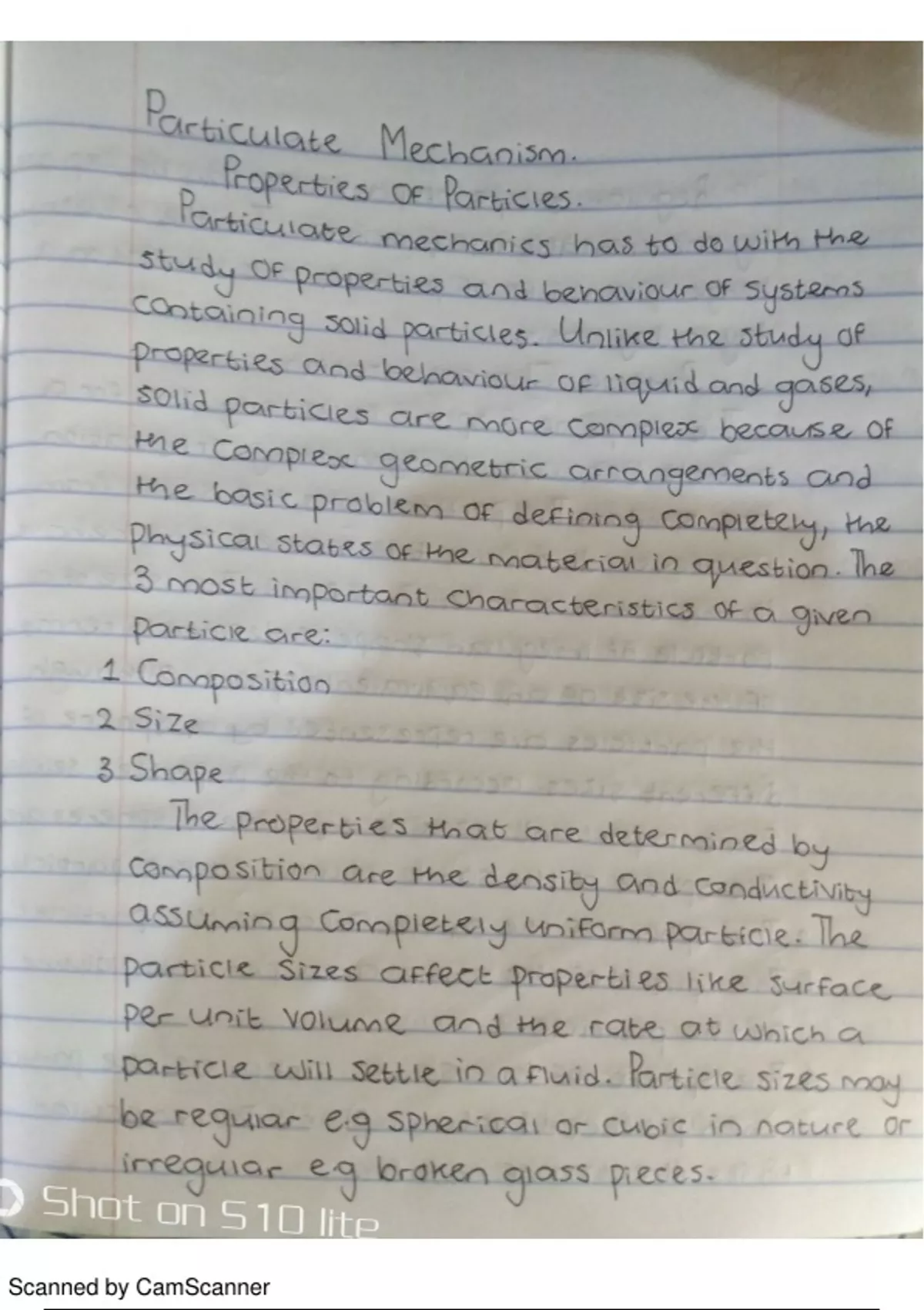 Particulate Mechanics Notes; Particle Size
