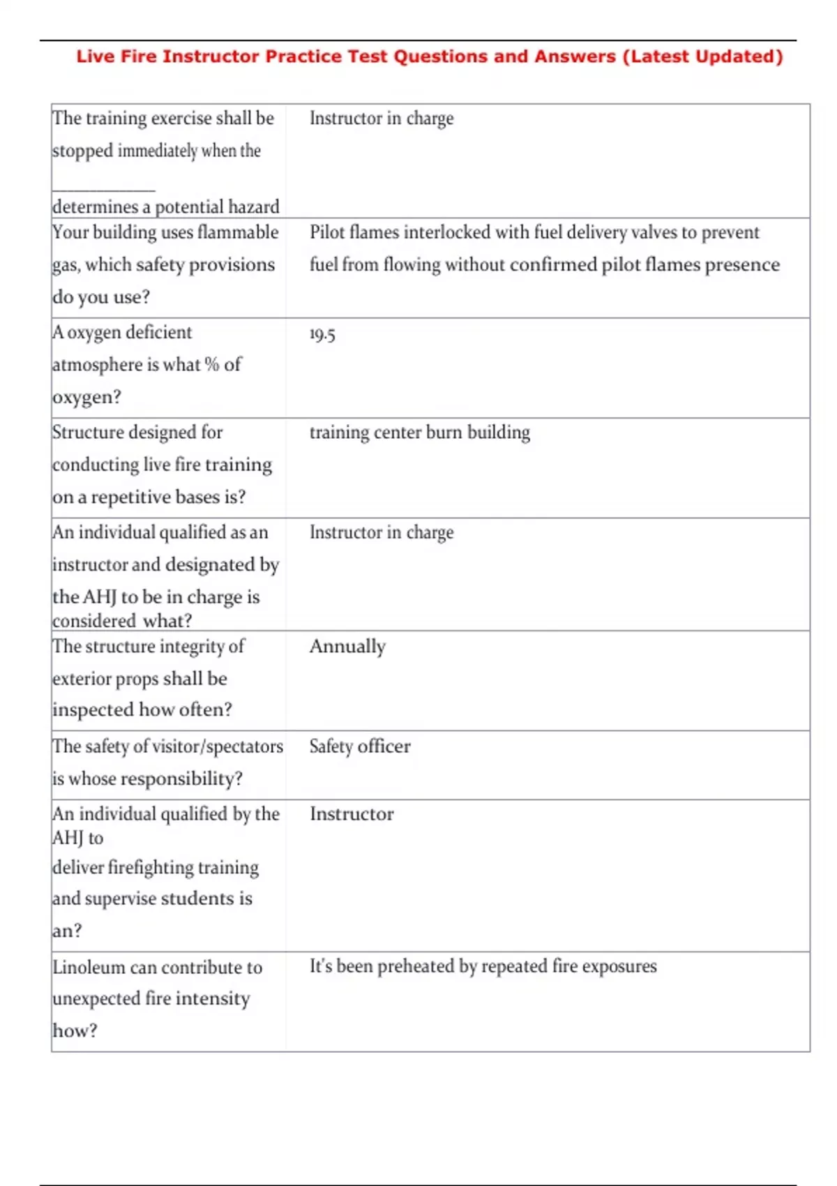 Live Fire Instructor Practice Test Questions and Answers (Latest Updated)