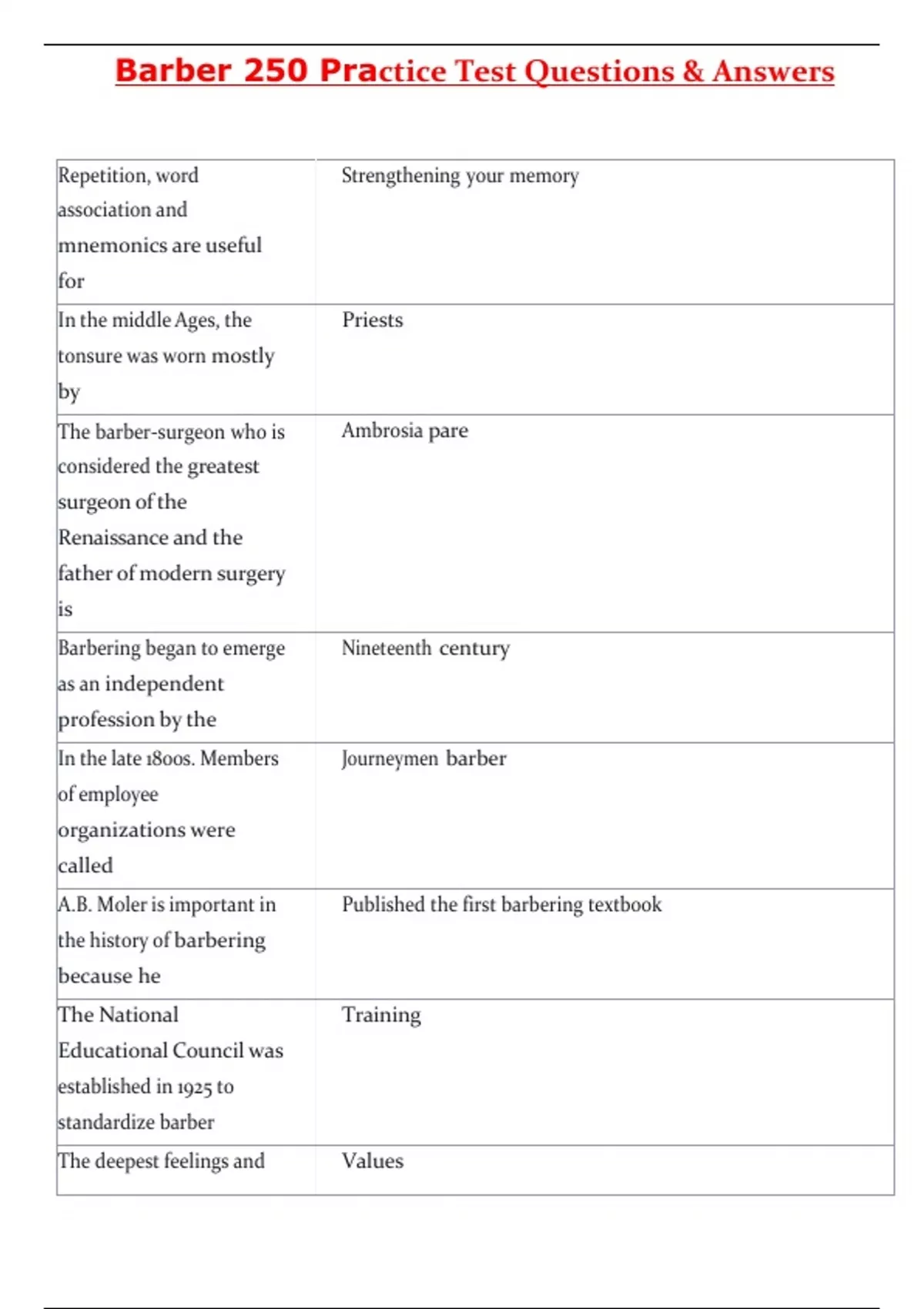 Barber 250 Practice Test Questions & Answers