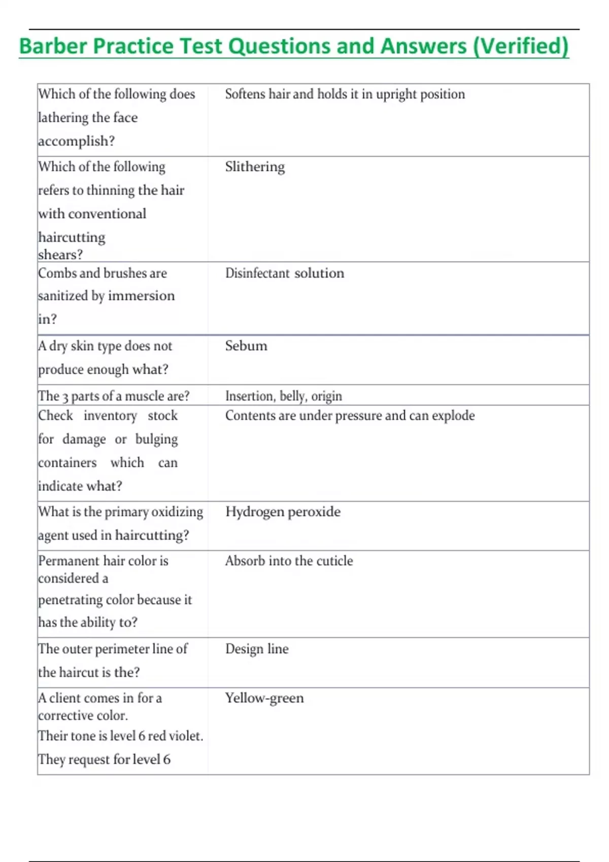 Barber Practice Test Questions and Answers (Verified)