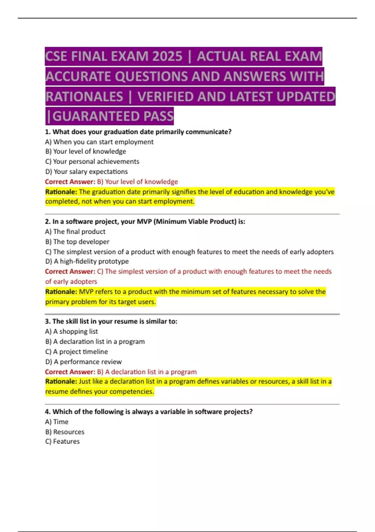 ACCURATE QUESTIONS AND ANSWERS WITH