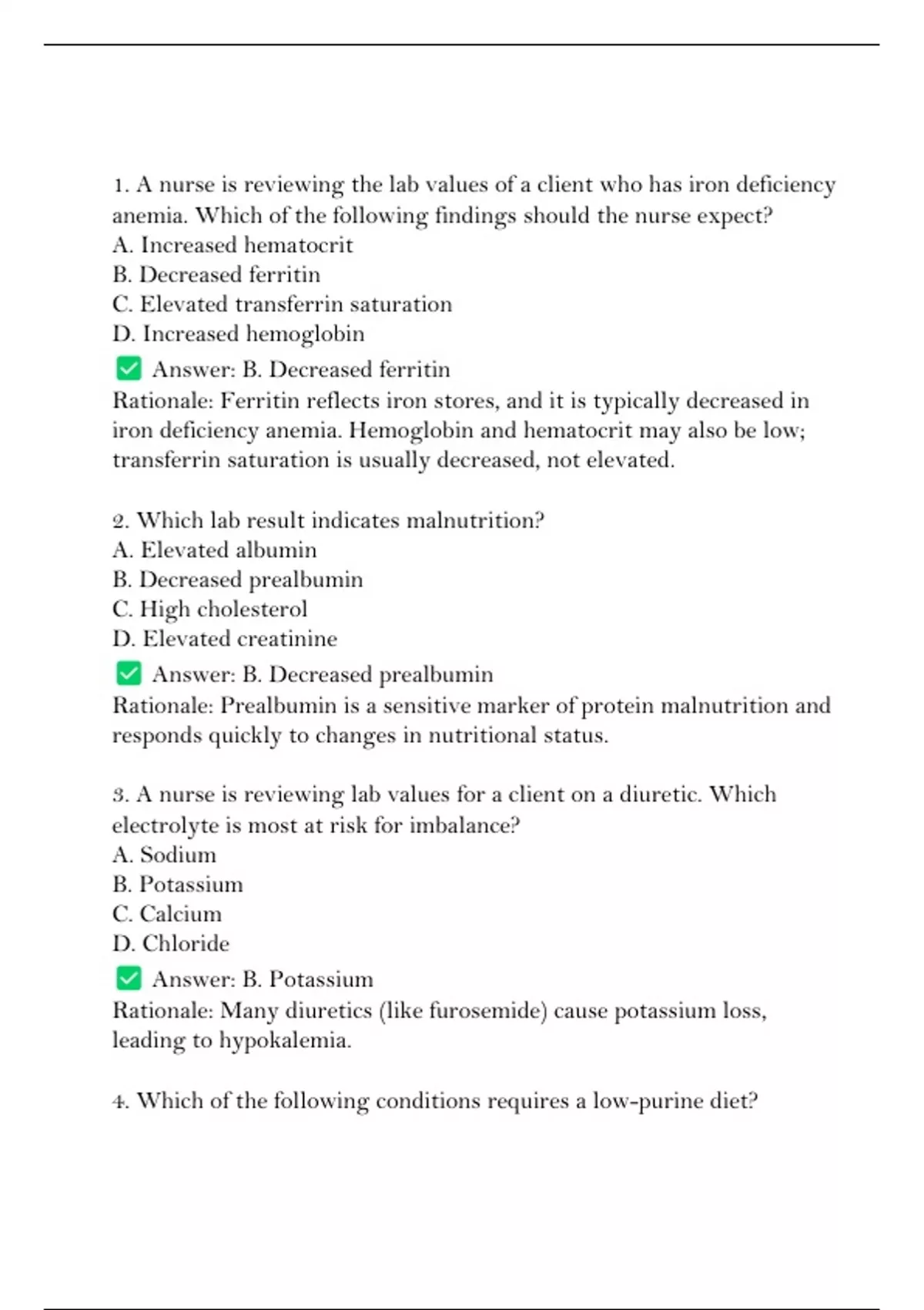 1. A nurse is reviewing the lab values of a client who has iron deficiency