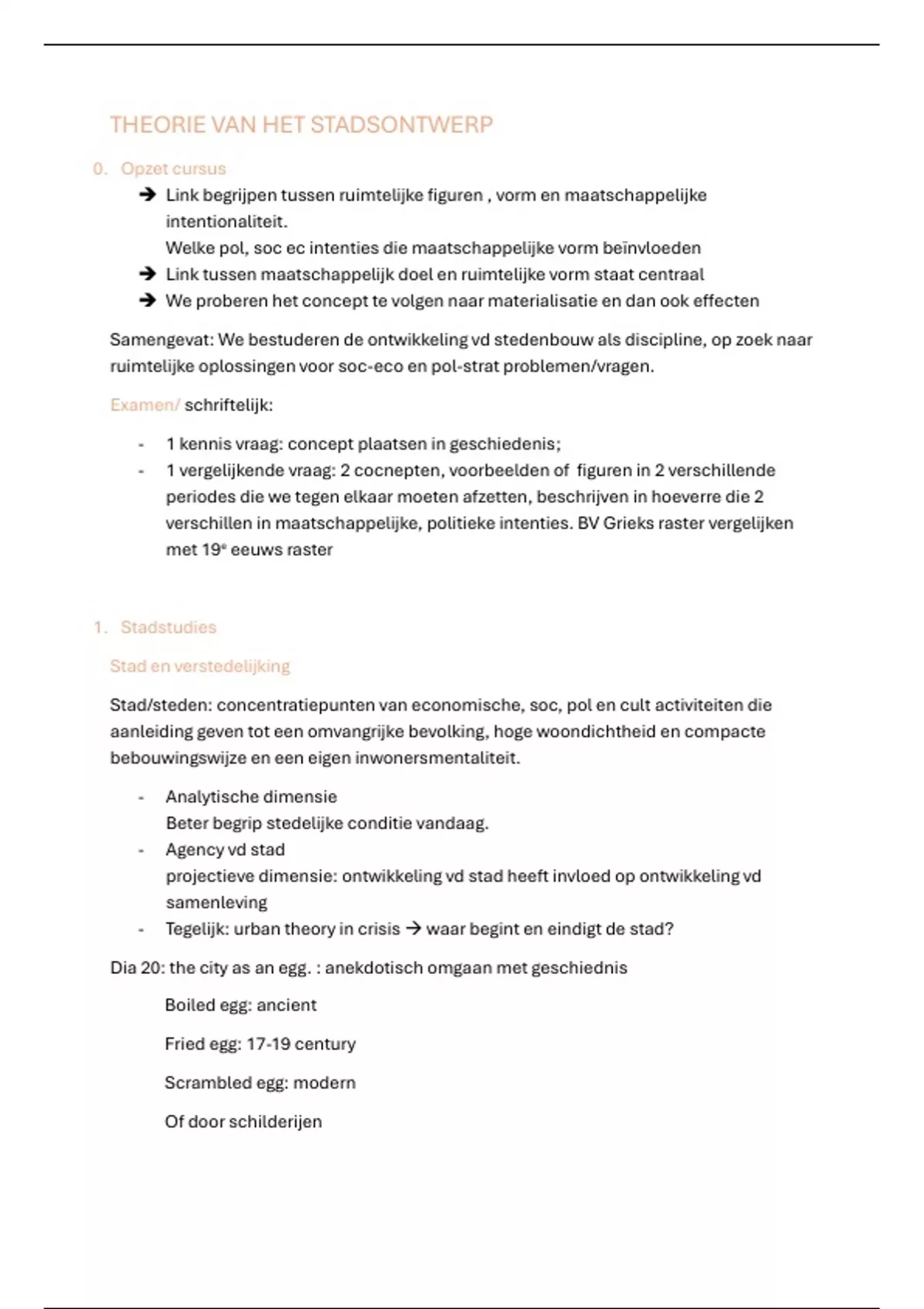 Samengevat: We bestuderen de ontwikkeling vd stedenbouw als discipline, op zoek naar