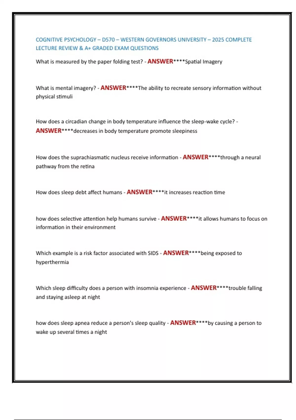 LECTURE REVIEW & A+ GRADED EXAM QUESTIONS