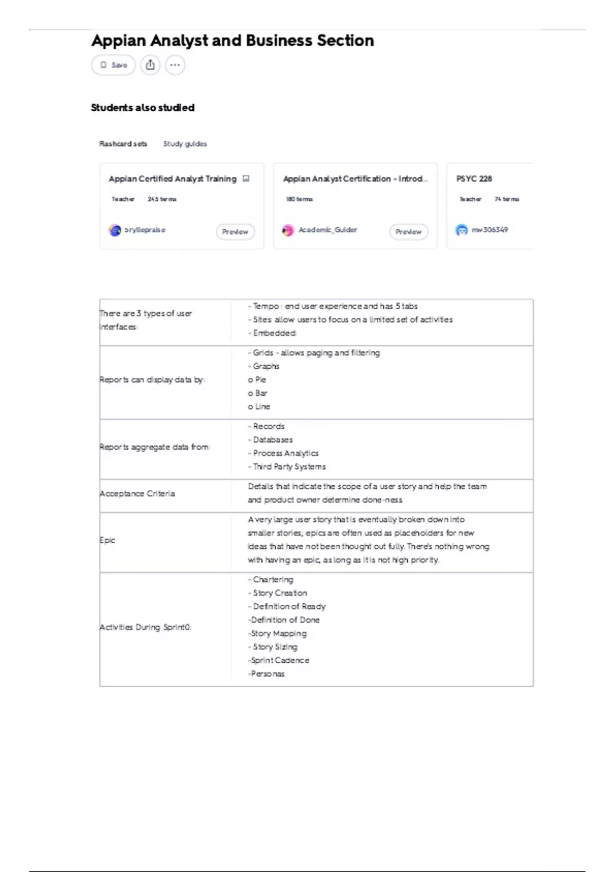 Flashcard sets Study guides