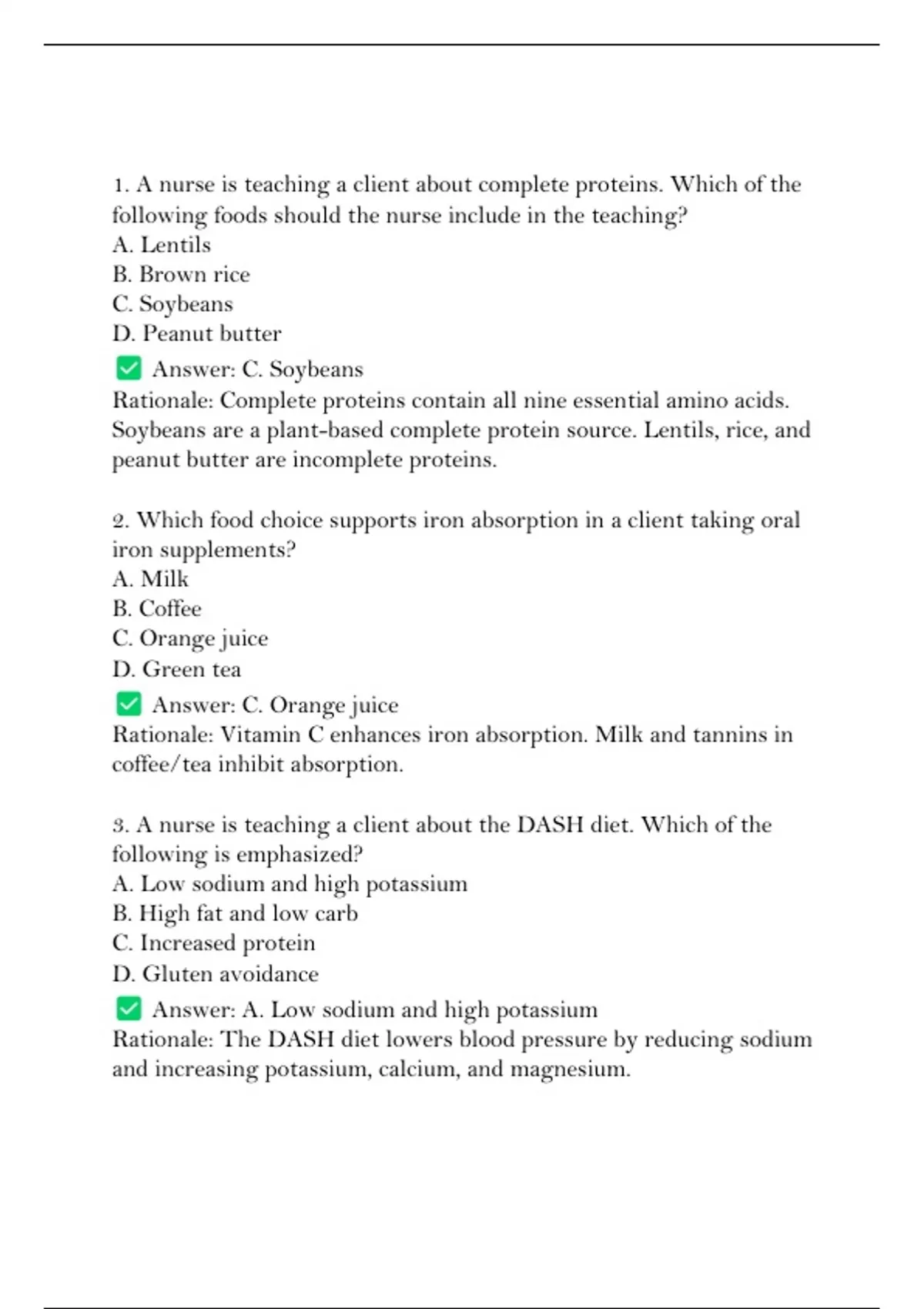3. A nurse is teaching a client about the DASH diet. Which of the