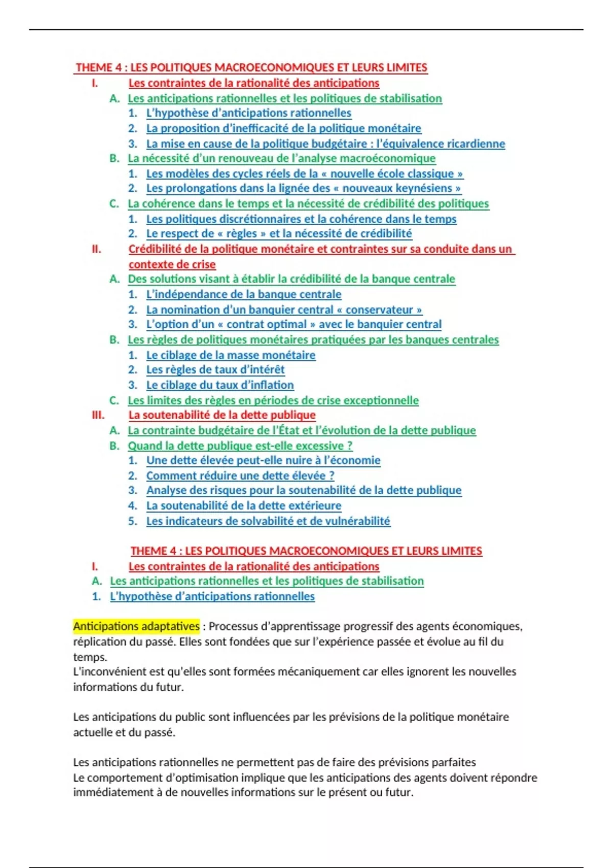 THEME 4 : LES POLITIQUES MACROECONOMIQUES ET LEURS LIMITES