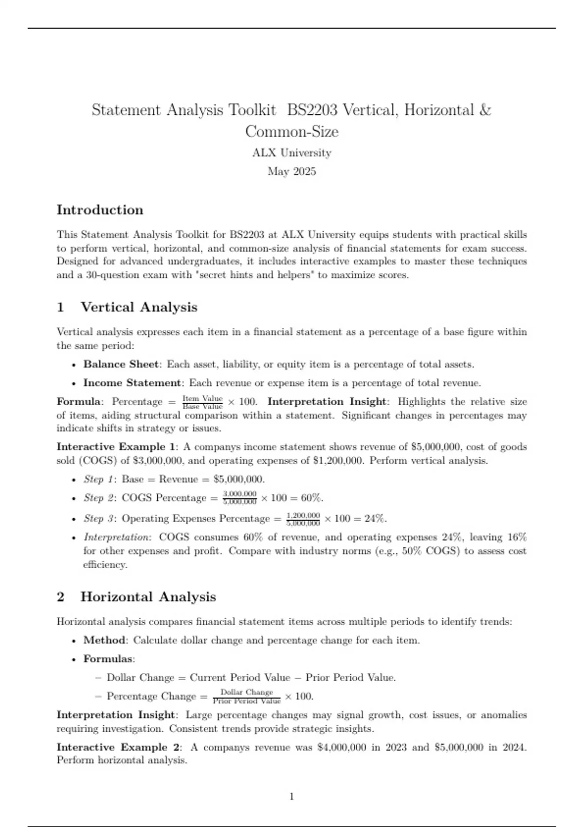 This Statement Analysis Toolkit for BS2203 at ALX University equips students with practical skills