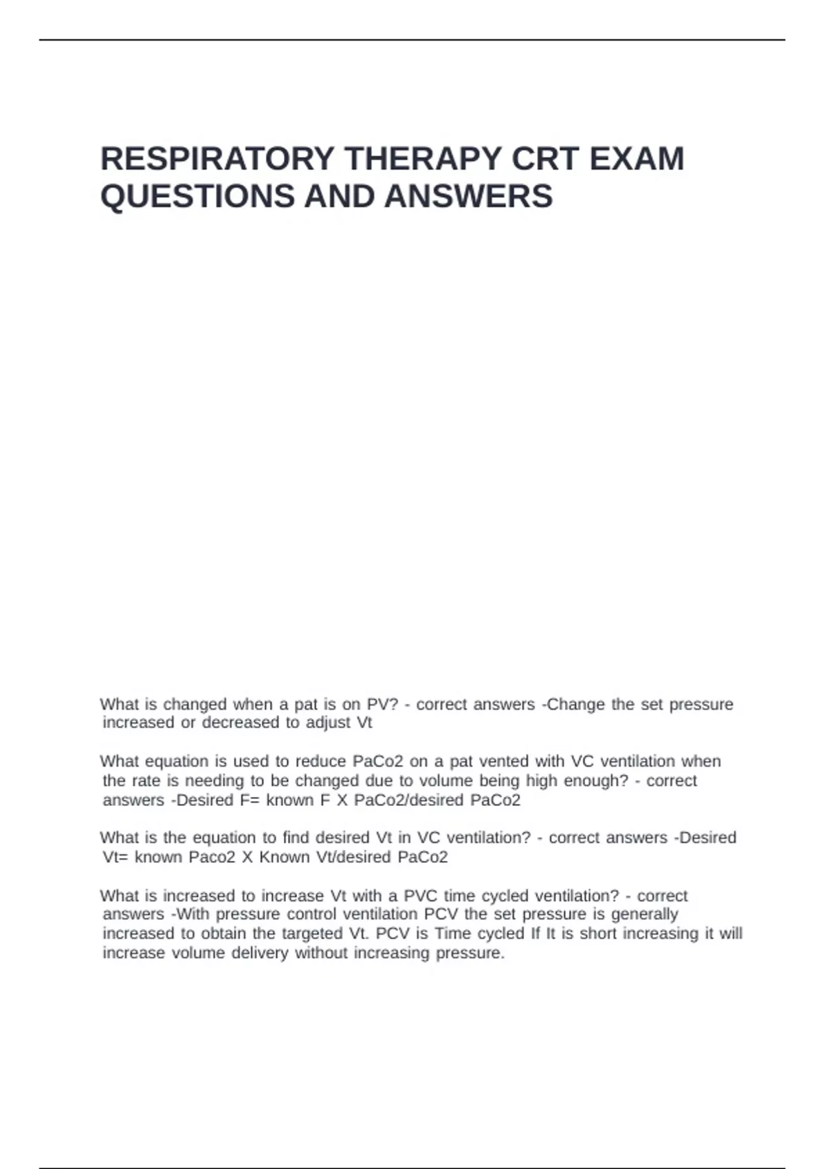 RESPIRATORY THERAPY CRT EXAM