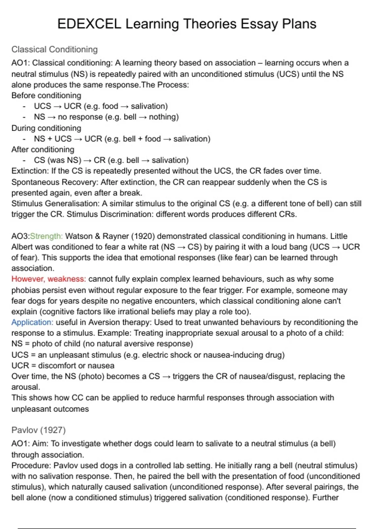 AO1: Classical conditioning: A learning theory based on association – learning occurs when a