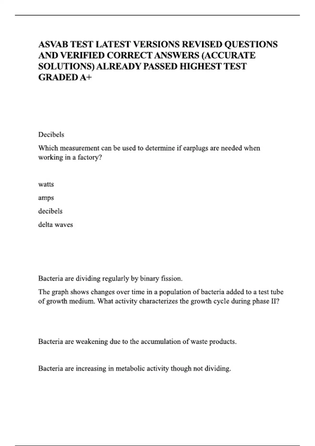 ASVAB TEST (Questions with 100% Correct Answers) RATED A+.