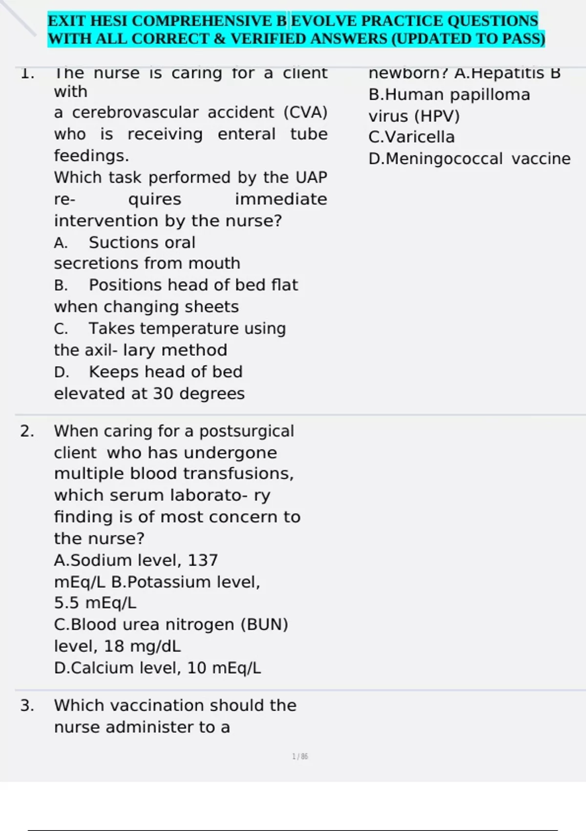 , EXIT HESI COMPREHENSIVE B EVOLVE PRACTICE QUESTIONS