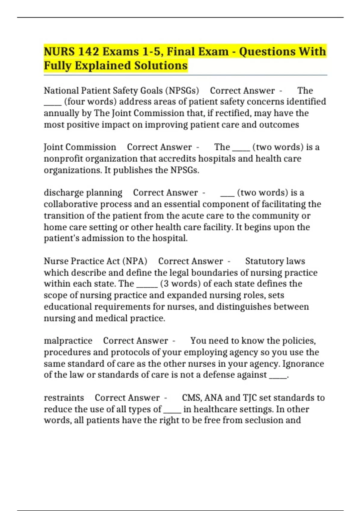 restraints Correct Answer - CMS, ANA and TJC set standards to