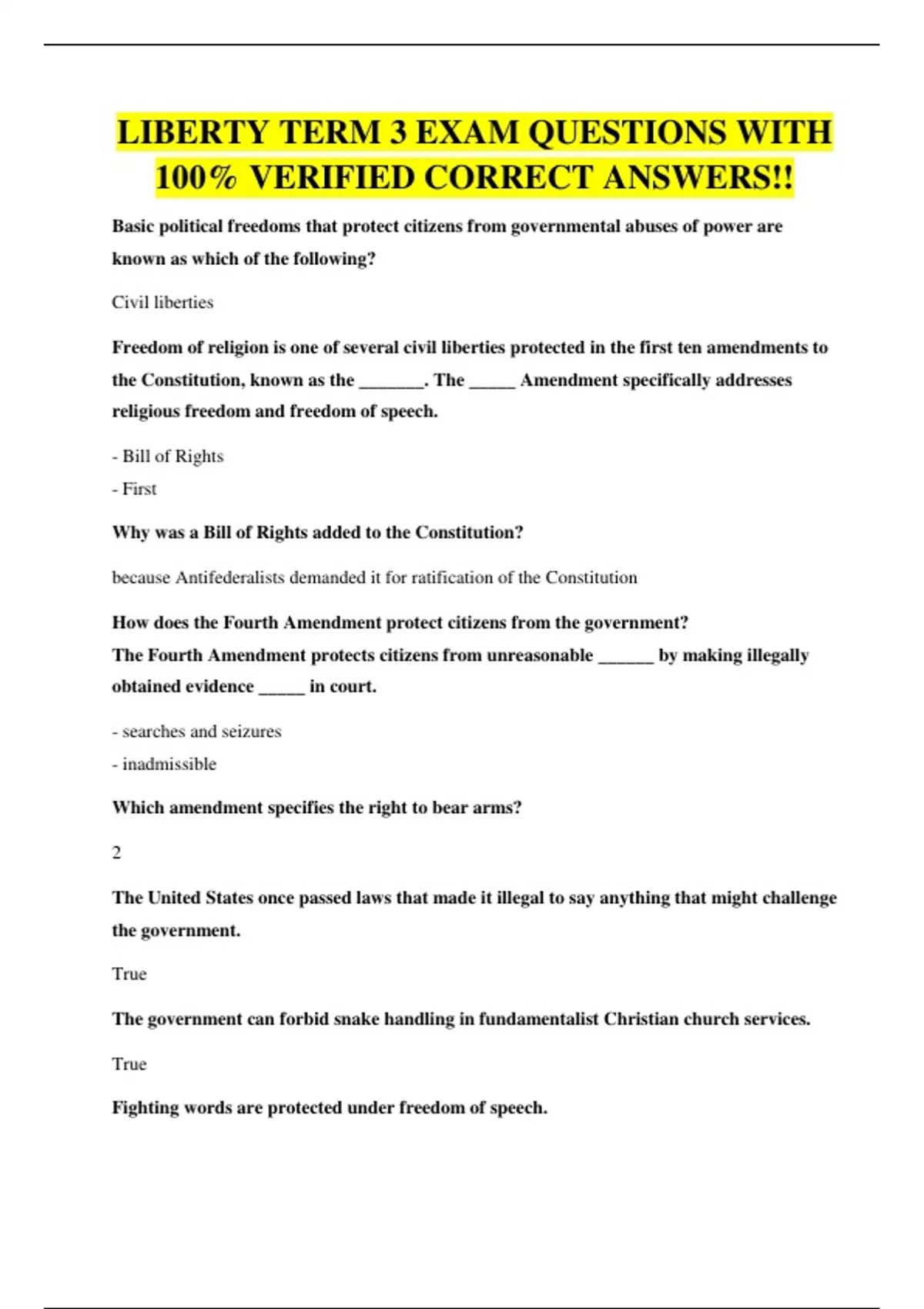LIBERTY TERM 3 EXAM QUESTIONS WITH