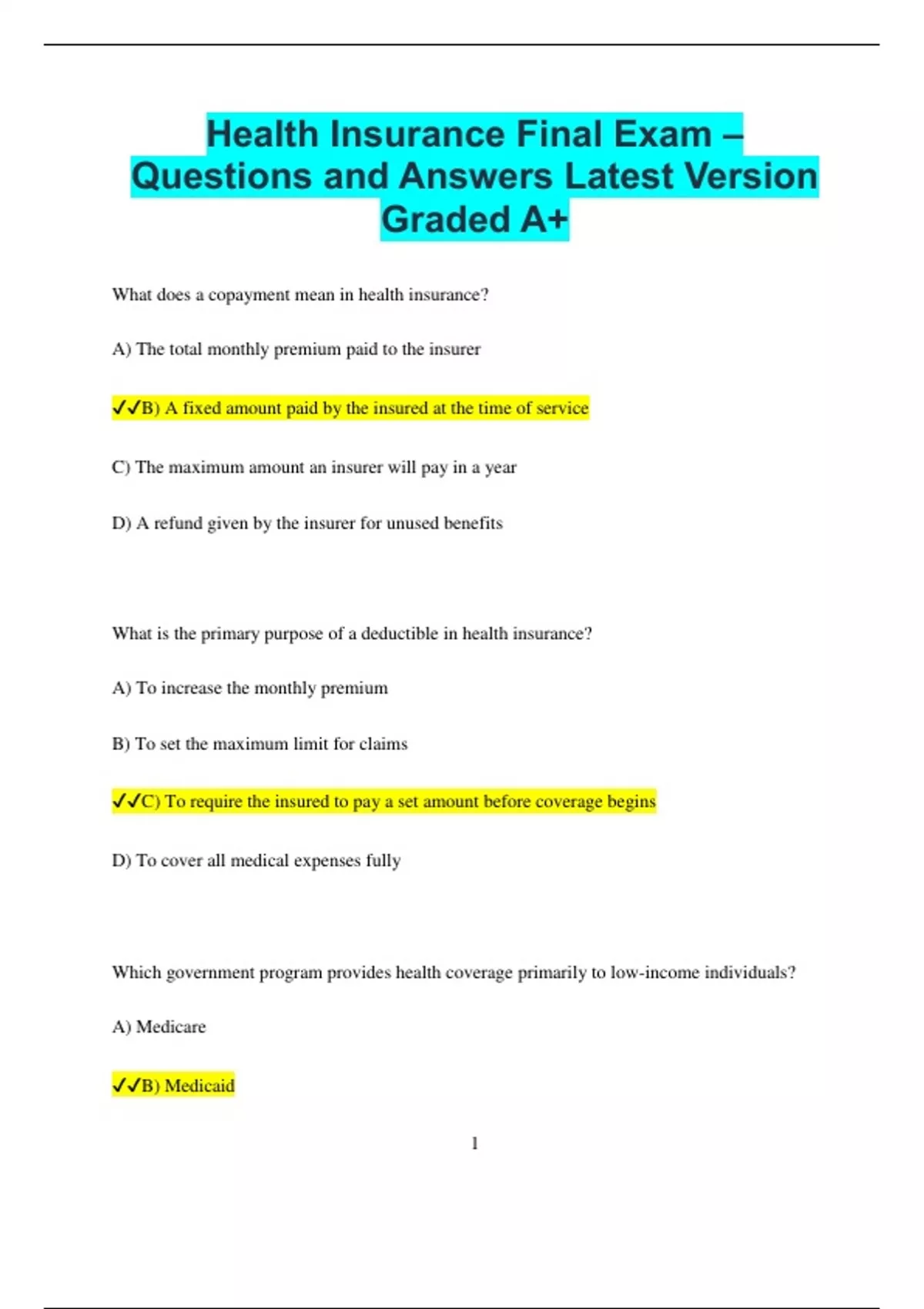 ✔✔B) The most you pay in deductibles, copays, and coinsurance before insurance pays 100%